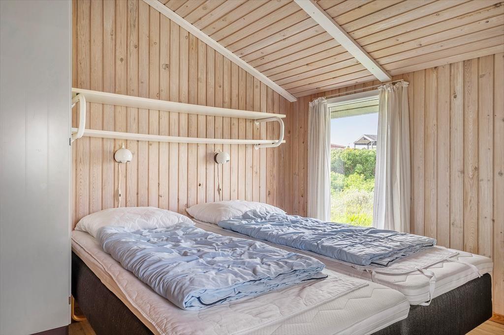 Hele 120 m2 får I at brede jer på inden døre i sommerhuset, der har plads til otte personer. Med fire soveværelser og to badeværelser egner huset sig til to børnefamilier, hvis ikke det er bedsteforældrene, I inviterer med på ferie. Lige meget hvad kan I se frem til at hygge jer i det åbne køkken og stuen, der har brændeovn, varmepumpe og fladskærms-tv med parabol og Chromecast. Der er også bordfodbold, så sofahyggen kan afveksles med en sjov turnering – og der er for øvrigt spil og legetøj til de yngste feriegæster. Måske især de voksne vil værdsætte, at der er spabad og sauna på det største badeværelse, så feriedagen kan afsluttes med en omgang velgørende wellness.