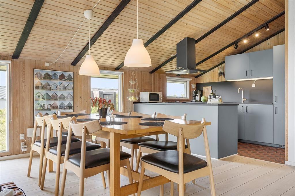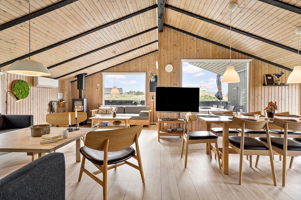 Det 103 m2 store sommerhus er blevet delvist renoveret i 2022, og de velvalgte forbedringer passer godt sammen med husets mere oprindelige stiltræk. Huset emmer af hygge og charme, og I kan hurtigt føle jer hjemme, så I kan straks gå i gang med at lave kaffe, tænde op i brændeovnen og finde ludospillet frem. Stue og køkken ligger i åben forbindelse, og det er sikkert her, I kommer til at tilbringe en stor del af feriedagene. Er det køligt udenfor, kan I også slappe af i saunaen, der ligger i forlængelse af det pæne badeværelse. Når det er ferietid, er det også skønt at have mulighed for at sove længe, og det kan foregå på sommerhusets fire gode soveværelser.