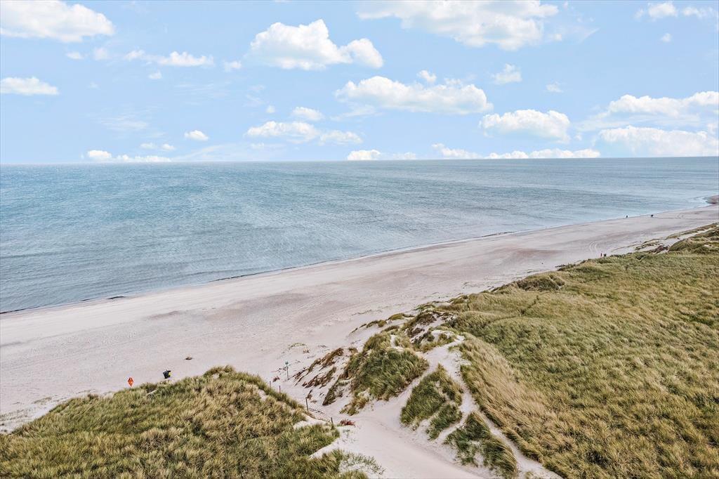 I Bjerregård bor I et hyggeligt, lukket sommerhusområde med rolige veje og kort afstand til stranden. Vesterhavet venter blot 650 meter væk fra sommerhuset, og I har også nem adgang til Ringkøbing Fjord, der breder sig øst for Holmsland Klit. I bil eller på cykel kan I tage den flotte køretur op mod fiskerbyen Hvide Sande, der ligger midt på landtangen. Her har I rig mulighed for at surfe og prøve andre former for vandsport, og I kan fiske fra havnen, hvis ikke I hellere vil købe fiskene fra en af byens lækre røgerier. Nymindegab kan I også hurtigt nå frem til, og naturelskere skal lægge vejen forbi halvøen Tipperne, der er en vigtig rasteplads for trækfugle.