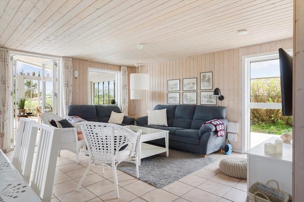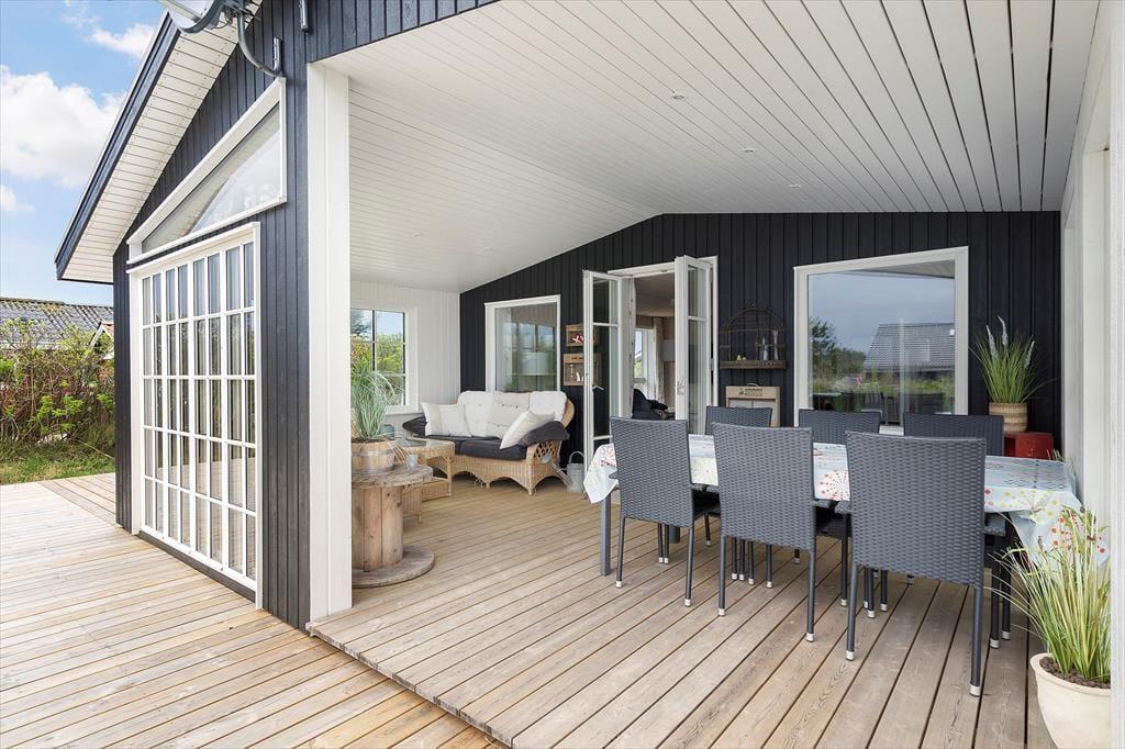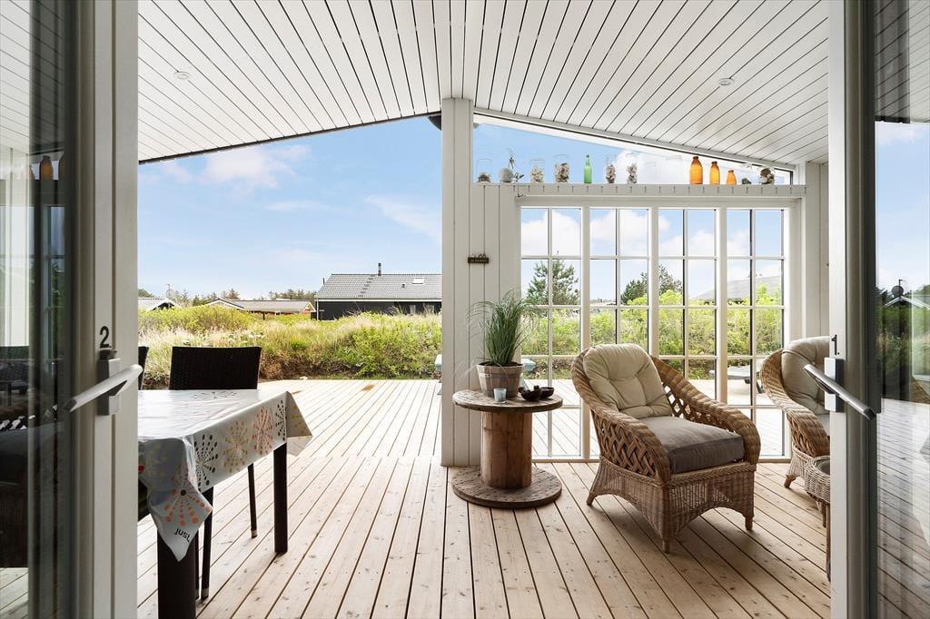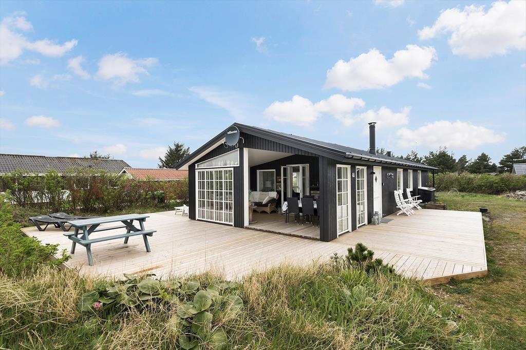 Der er meget godt at sige om dette dejlige sommerhus, der ligger på en stille sidevej i Bjerregård tæt på købmanden og bare 800 meter fra stranden. Men det allerførste, der bør fremhæves, er nu næsten et flot terrassemiljø med ’udestue’, hvor I får de bedste forudsætninger for at nyde ferien i det fri.