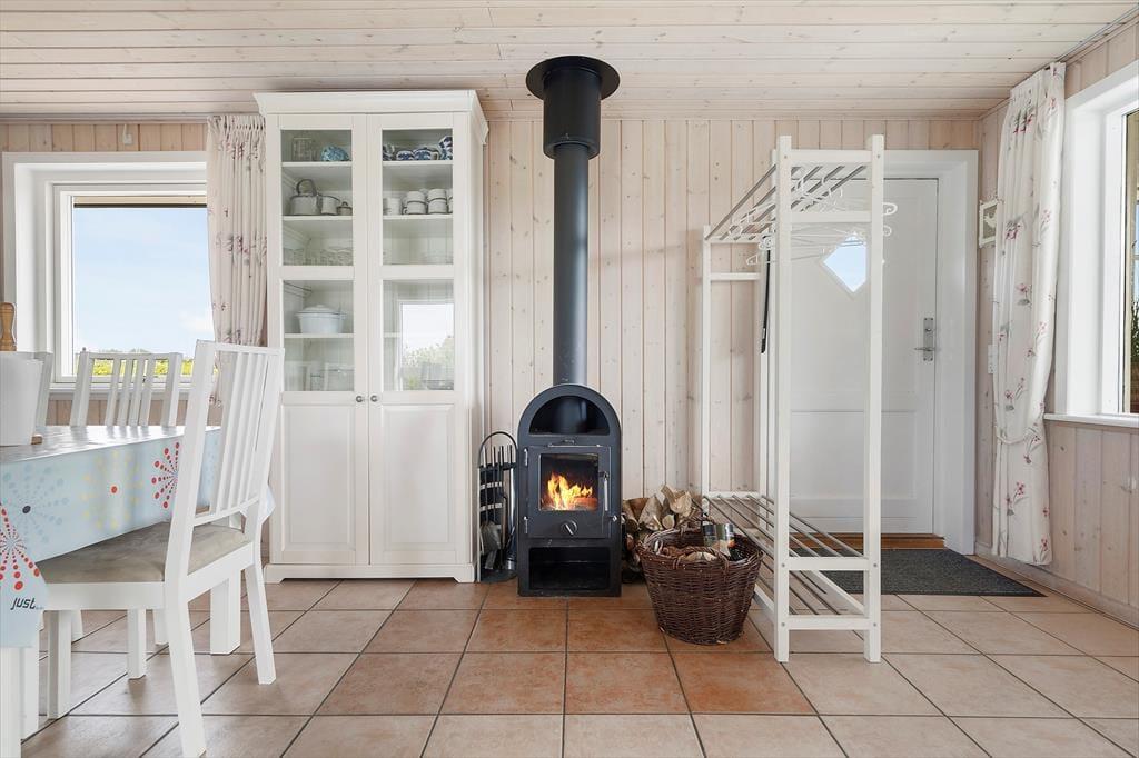 Da sommerhuset blev renoveret i 2023, kom der flere forbedringer til – blandt andet et nyt badeværelse med gulvvarme og rainshower, der gør morgenbadet til en fornøjelse. Nætterne kan tilbringes på de tre gode soveværelser, hvor I har i alt syv sengepladser at vælge imellem. Køkken og stue ligger i åben forbindelse, og her står en brændeovn klar til at sprede varme og hygge, hvis det er køligt udenfor. En havedør giver jer direkte adgang til den overdækkede terrasse, som er en herlig forlængelse af huset, for den føles nærmest som en udestue og fungerer som en skøn opholdsplads både morgen, middag og aften.
