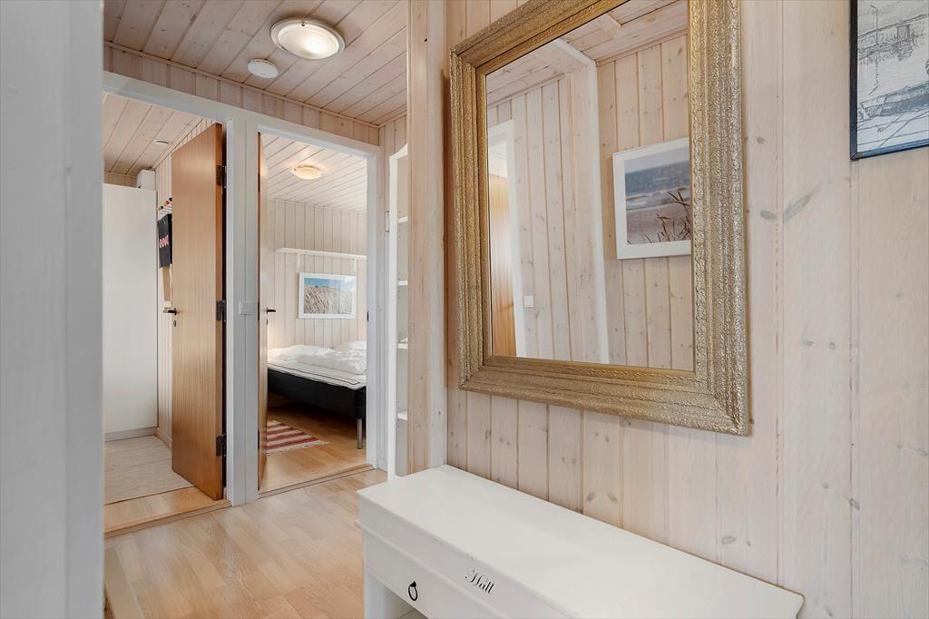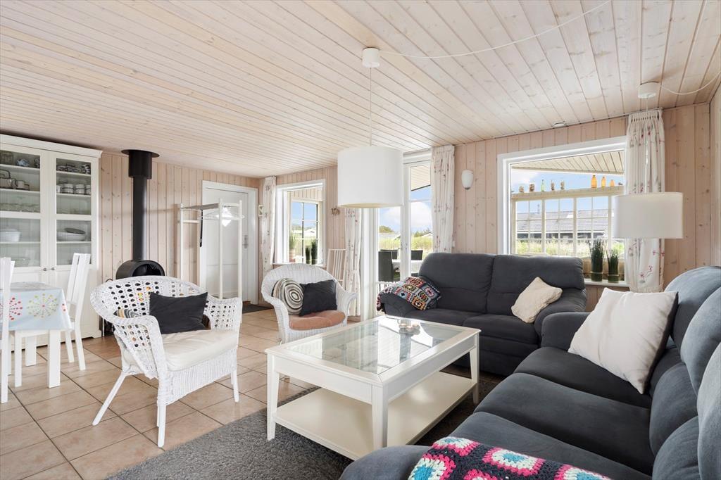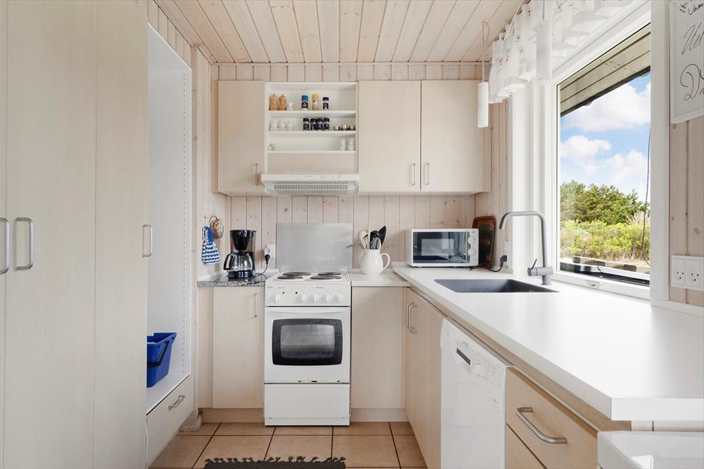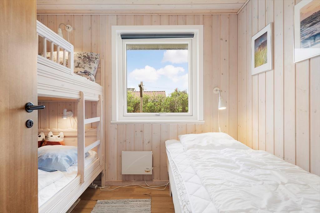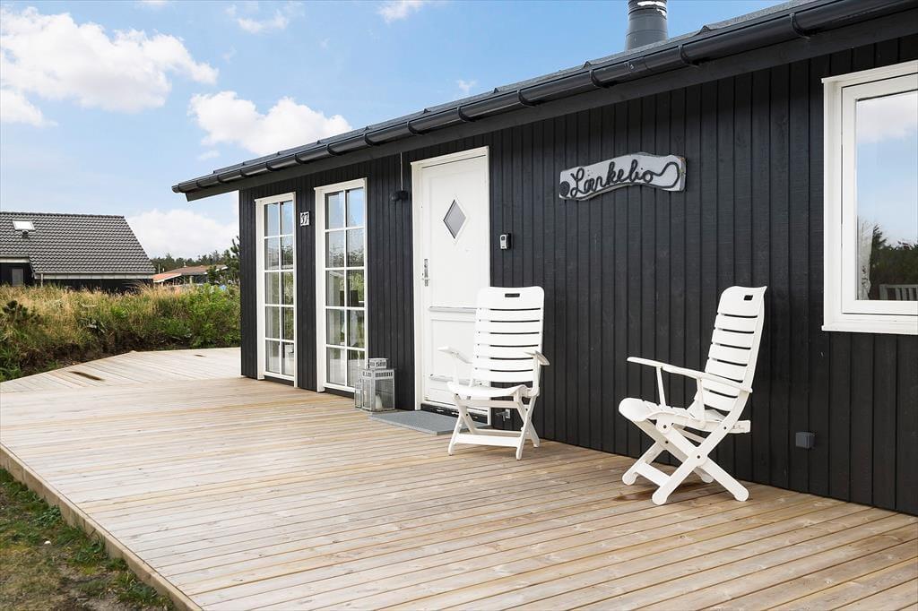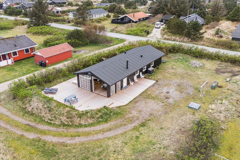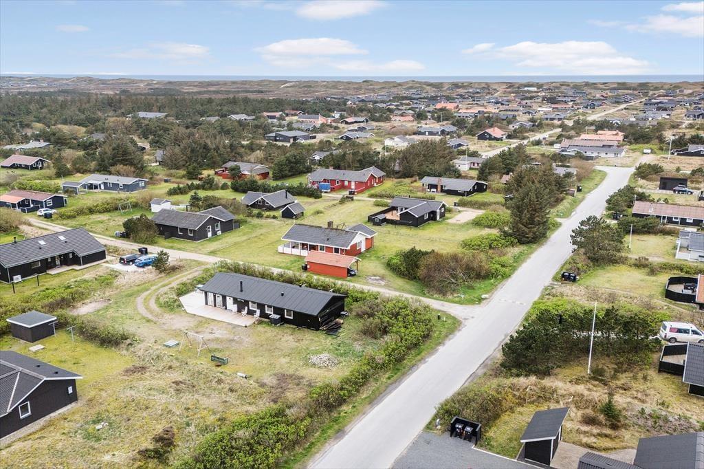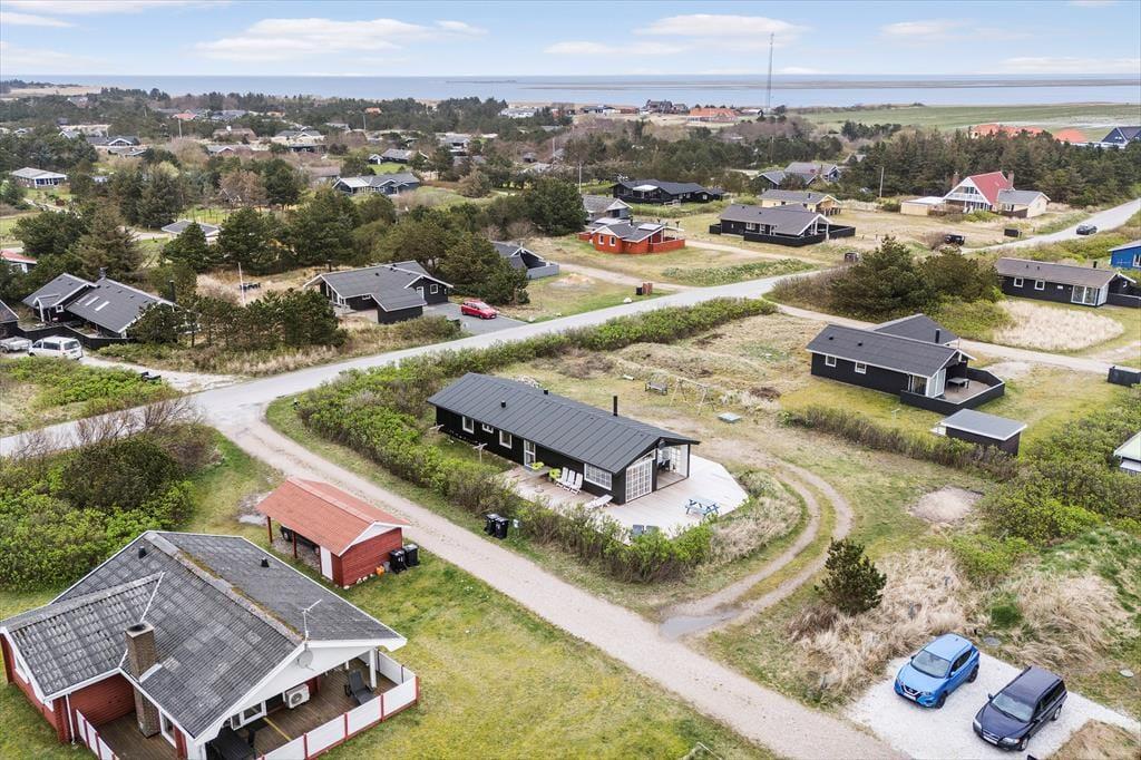 Fra sommerhuset tager det kun få minutter at gå hen til Bjerregårds købmand, hvis I løber tør for mælk til kaffen eller får spontant lyst til en is. Børnene kan helt sikkert lokkes med derhen – især hvis I gør holdt ved hoppepuden, hvor de kan brænde energi af og finde nye legekammerater. For hele familien er det desuden skønt at bo bare 800 meter fra Bjerregård Strand og Vesterhavet, og på turen derhen kan I endda følge sommerhusområdets rolige småveje. Bjerregård ligger i den sydlige ende af Holmsland Klit, og med smukke naturomgivelser og få kilometer til Nymindegab og Hvide Sande kan I se frem til nogle skønne dage.