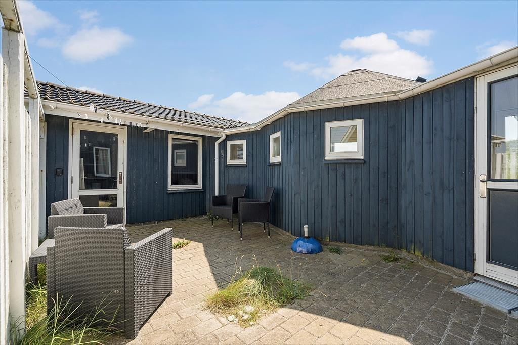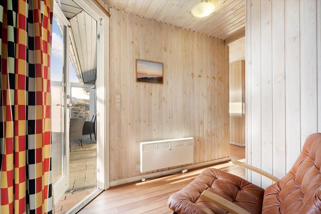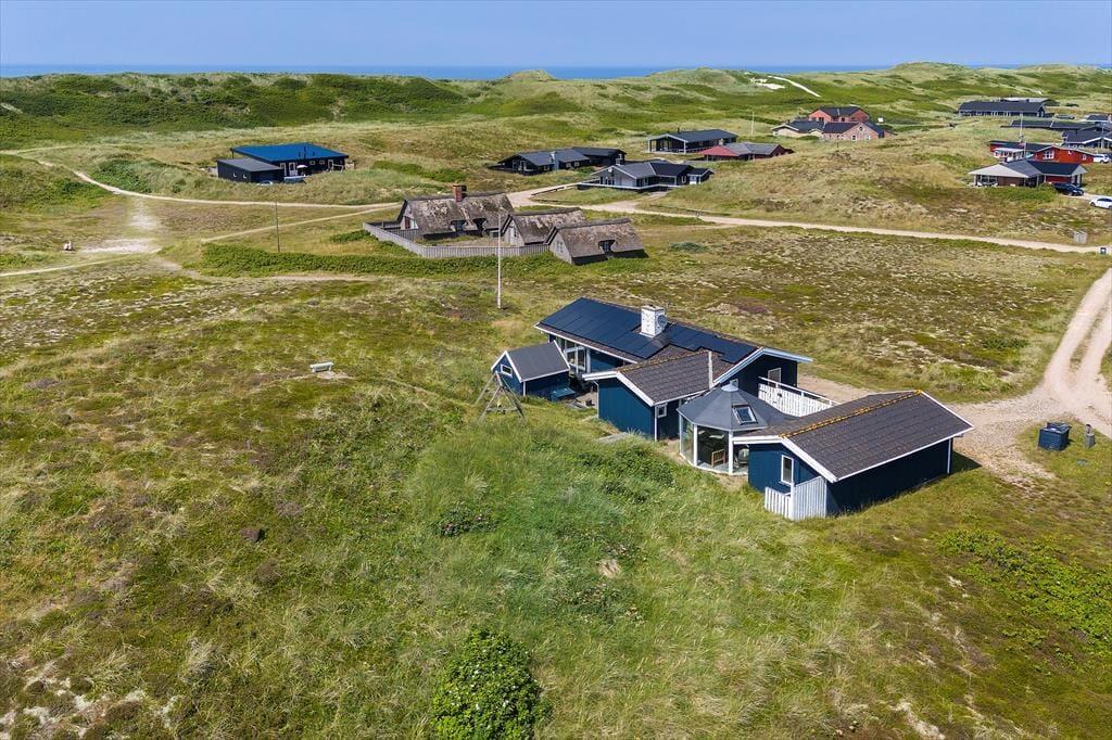 Sommerhuset ligger roligt og naturskønt placeret på en lukket vej i Bjerregård. Der er ingen grund til at finde hverken cykler eller bilen frem, når I vil ned på stranden, for I skal bare gå en ganske kort tur gennem det kuperede landskab, før I står på toppen af klitterne og kigger lige ud på Vesterhavets bølger. Her i den sydlige ende af Holmsland Klit har I desuden kort afstand til Ringkøbing Fjord mod øst, og Bjerregårds købmand ligger bare et par kilometer væk mod nord. I Nymindegab kan I blandt andet spise på den lokale kro, og hvis I vil ud i naturen, kan I fortsætte til det store fuglereservat Tipperne. Hvis I kan lide at surfe, fiske eller bare får lyst til en flot køretur, skal I køre nordpå til Hvide Sande midt på Holmsland Klit.