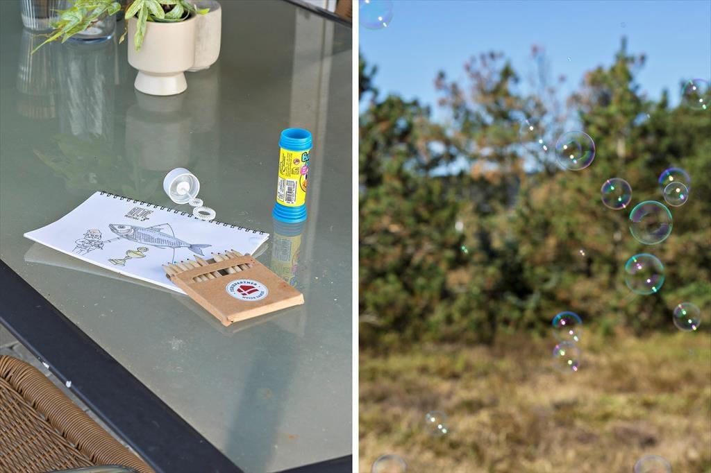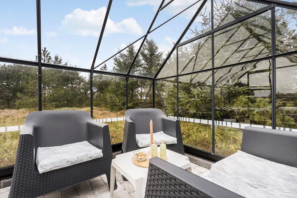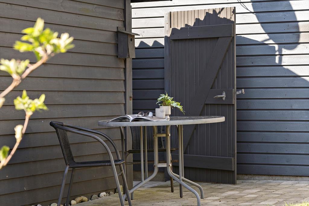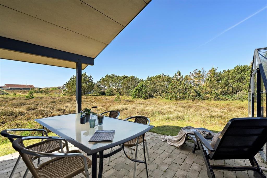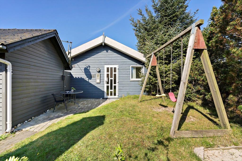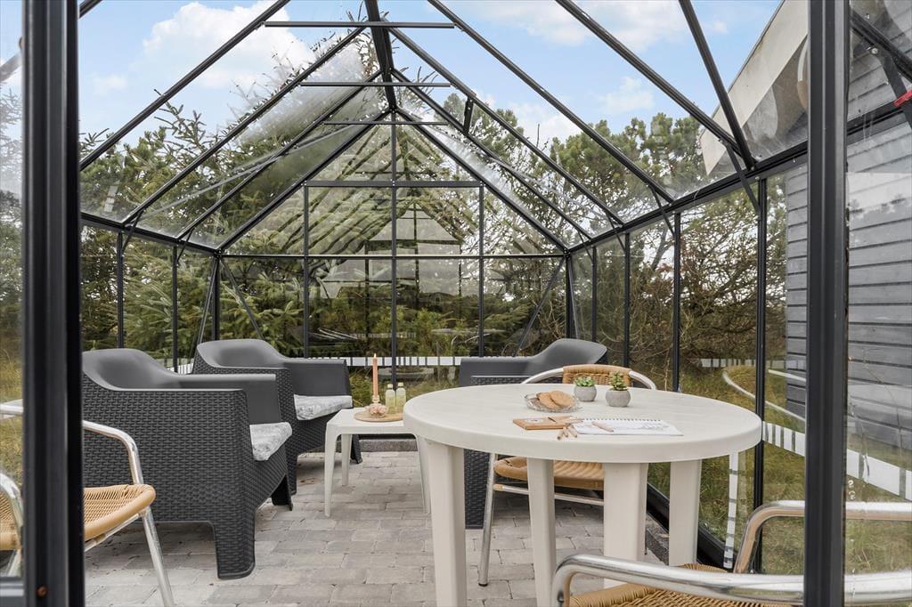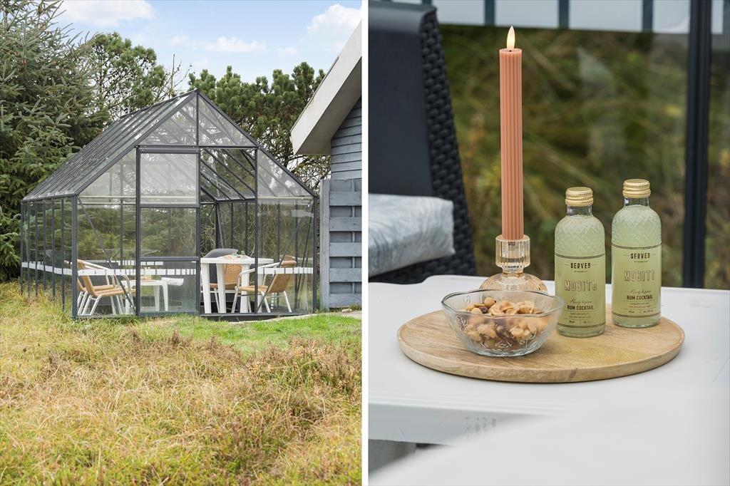 Den delvist overdækkede terrasse er det perfekte sted at nyde feriedagene. Her kan I slappe af i havemøblerne, grille lækkerier på grillen eller solbade i liggestolene. For børnene er der gynger, hvor de kan brænde energi af, mens de voksne nyder en kop kaffe i drivhusets havemøbler. Naturgrunden på 1.500 m2 giver rig mulighed for både bevægelse og afslapning. Dagen kan afsluttes med en gåtur langs stranden, hvor den friske havluft giver ny energi.