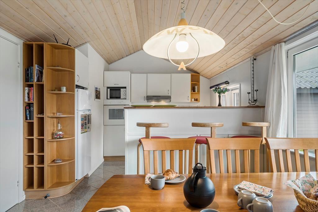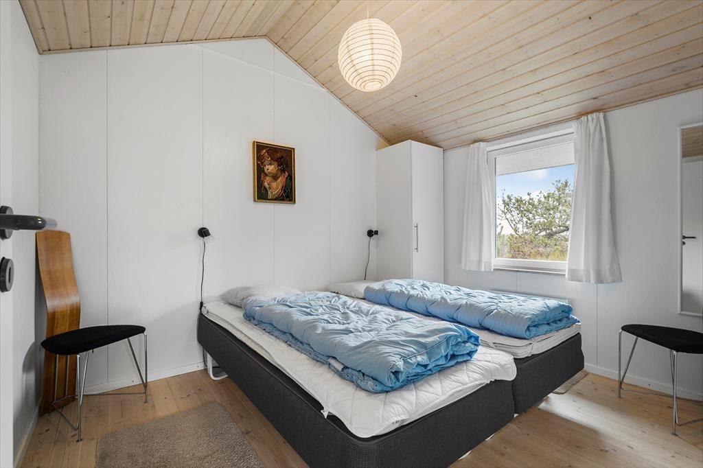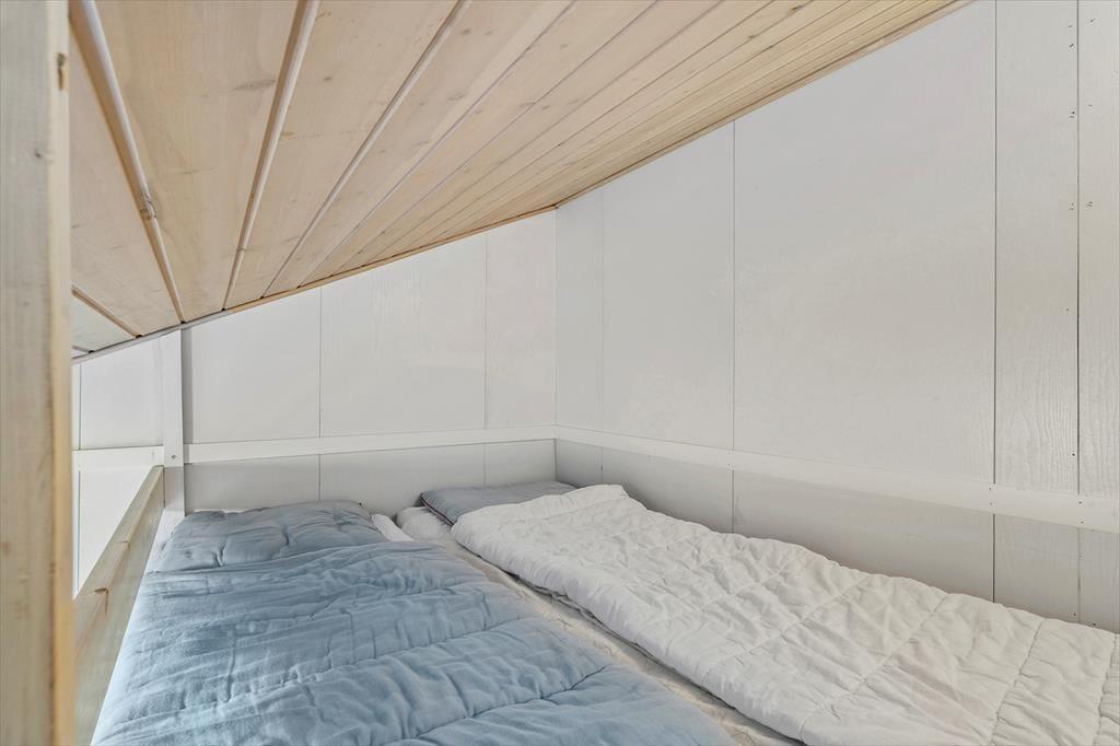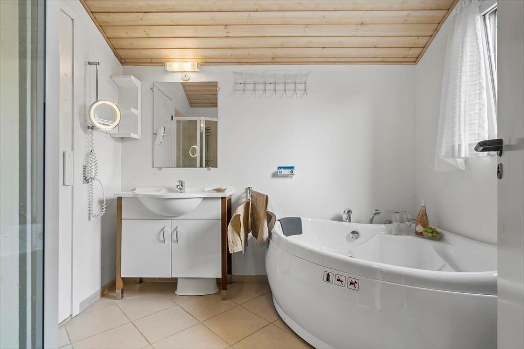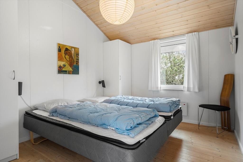 Når du træder ind i sommerhuset, mødes du af en lys og indbydende atmosfære, hvor store vinduespartier og lofter til kip giver et skønt lysindfald. Her er plads til seks voksne fordelt på tre værelser med komfortable senge, der sikrer en god nats søvn. Huset byder på både hygge og samvær – saml familien omkring spisebordet til hyggelige måltider eller find jer til rette i sofaen foran fjernsynet til en filmaften. Det åbne køkken indeholder alt, hvad I har brug for, og indbyder til fælles madlavning. Lad jer forkæle i husets wellness-afdeling, hvor både spa og sauna står klar til at give jer den ultimative afslapning.
