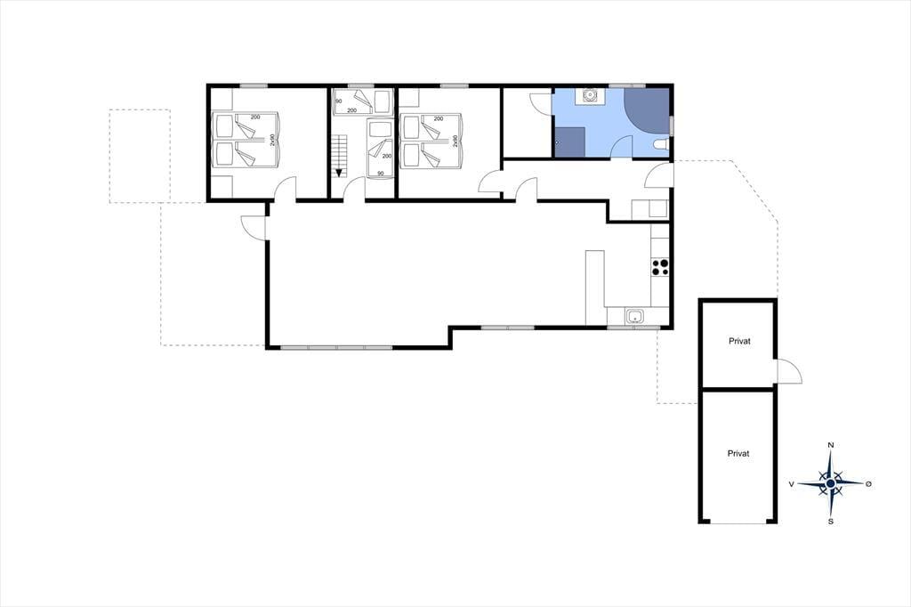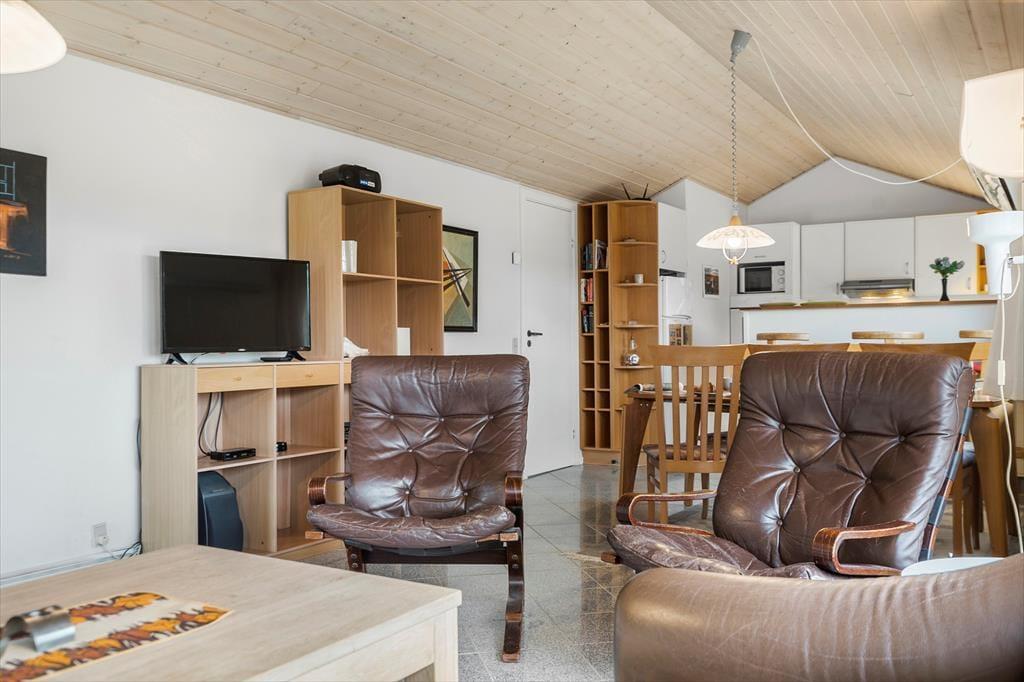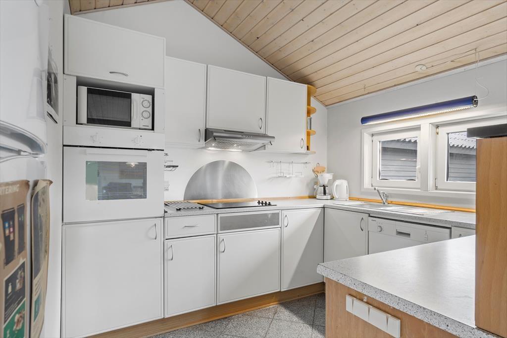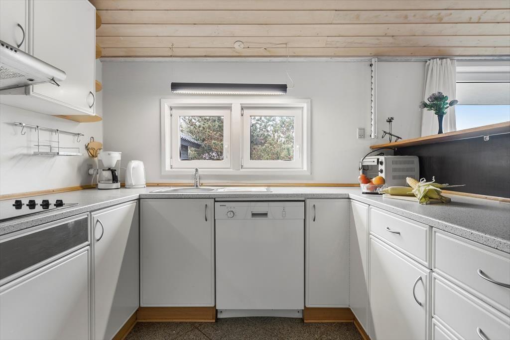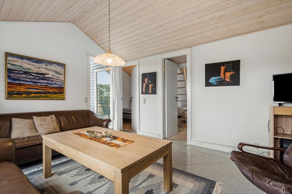 Når du træder ind i sommerhuset, mødes du af en lys og indbydende atmosfære, hvor store vinduespartier og lofter til kip giver et skønt lysindfald. Her er plads til seks voksne fordelt på tre værelser med komfortable senge, der sikrer en god nats søvn. Huset byder på både hygge og samvær – saml familien omkring spisebordet til hyggelige måltider eller find jer til rette i sofaen foran fjernsynet til en filmaften. Det åbne køkken indeholder alt, hvad I har brug for, og indbyder til fælles madlavning. Lad jer forkæle i husets wellness-afdeling, hvor både spa og sauna står klar til at give jer den ultimative afslapning.