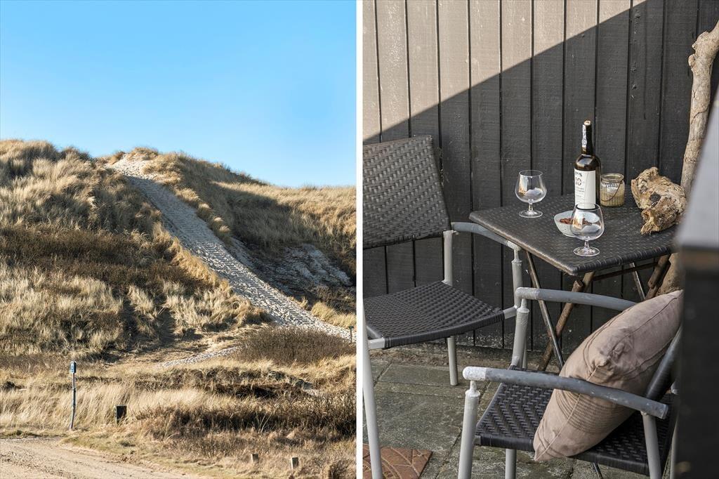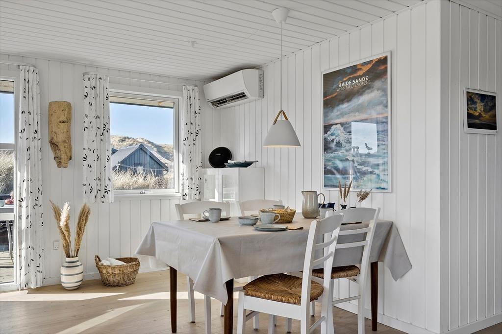 Sommerhuset ligger i det attraktive område tæt på Hvide Sande og Ringkøbing Fjord. Den brede sandstrand ved Vesterhavet ligger kun få minutters gang fra huset, så du kan hurtigt gå ned og mærke sandkornene mellem tæerne eller tage en dukkert i det friske hav. Området er også ideelt for vandsport, og du kan vælge mellem surfing, kajak eller fiskeri. Den hyggelige havneby Hvide Sande byder på restauranter, butikker og caféliv, og på de stille gader kan du nyde en afslappet spadseretur, mens du indånder den salte havluft. Er du til natur og stille stunder, kan du tage på lange gå- og cykelture langs kysten og fjorden.