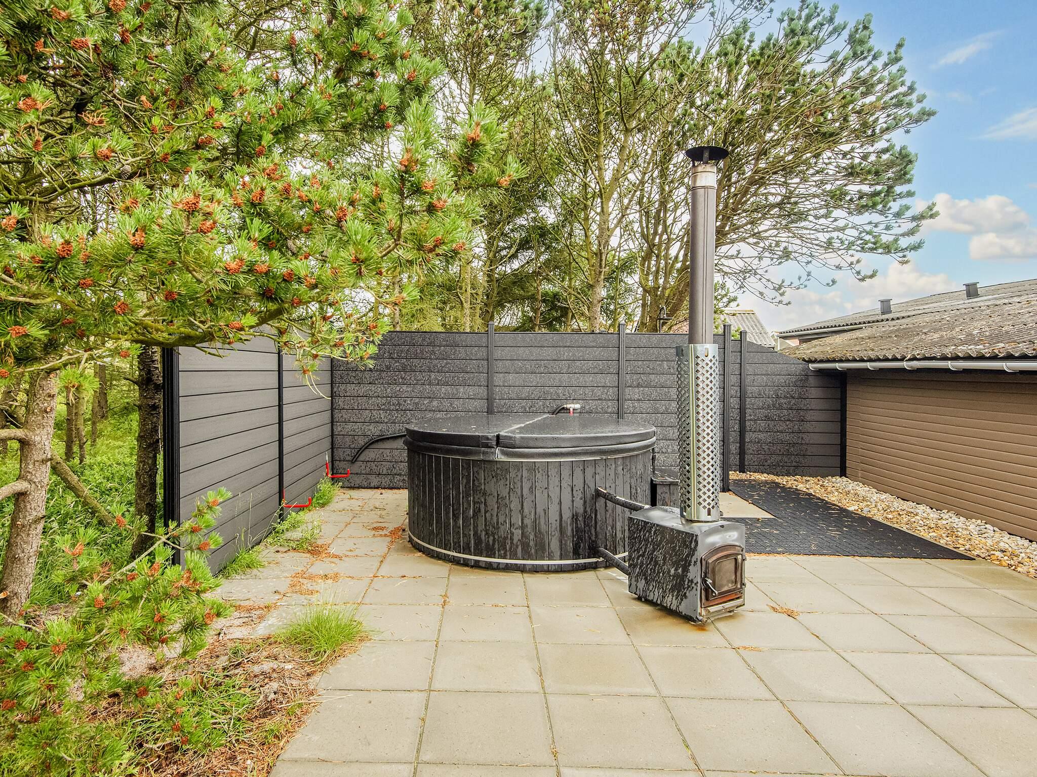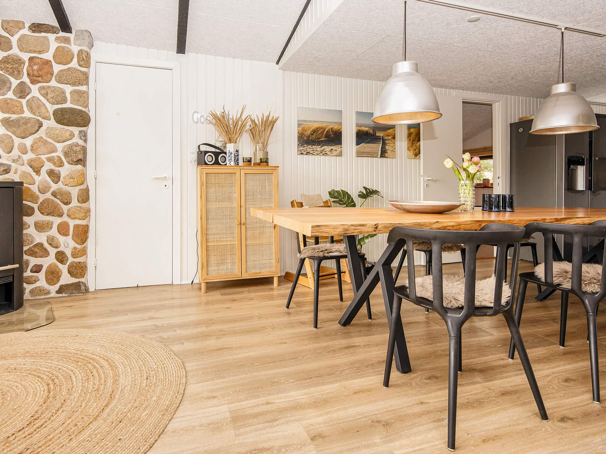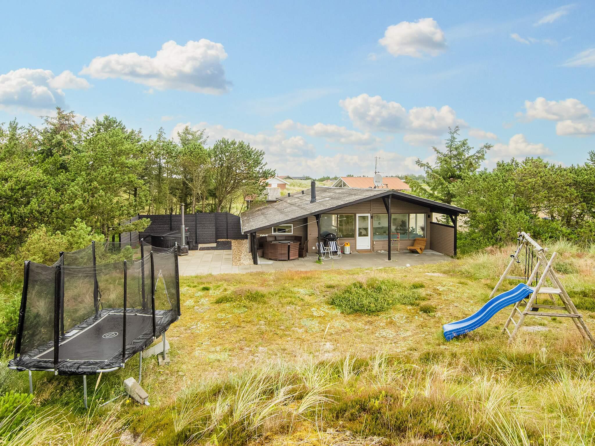 Midt i klitlandskabet, kun ca. 600 meter fra Vesterhavet ved Bjerregård, finder I dette sommerhus med bl.a. bordfodbold og motionscykel samt gratis, trådløst internet til underholdning. Huset er indrettet med et veludstyret køkken i åben forbindelse med den kombinerede opholds- og spisestue. Fra stuen er der to trin ned til to af soverummene, som begge er indrettet med dobbeltsenge. Derudover er der yderligere to soverum i huset, begge med køjesenge til to personer. Husets aktivitetsrum er adskilt fra stuen med en glasdør og et vinduesparti. Tilmed er der et gæstetoilet og et badeværelse med bruseniche. Derudover er der radio, tv med parabol, opvaskemaskine, vaskemaskine og tørretumbler. På en kølig sommeraften kan I sidde i stuemøblerne og kigge ud på de omkringliggende klitter mens I luner jer ved brændeovnen. Udlejes ikke til ungdomsgrupper.