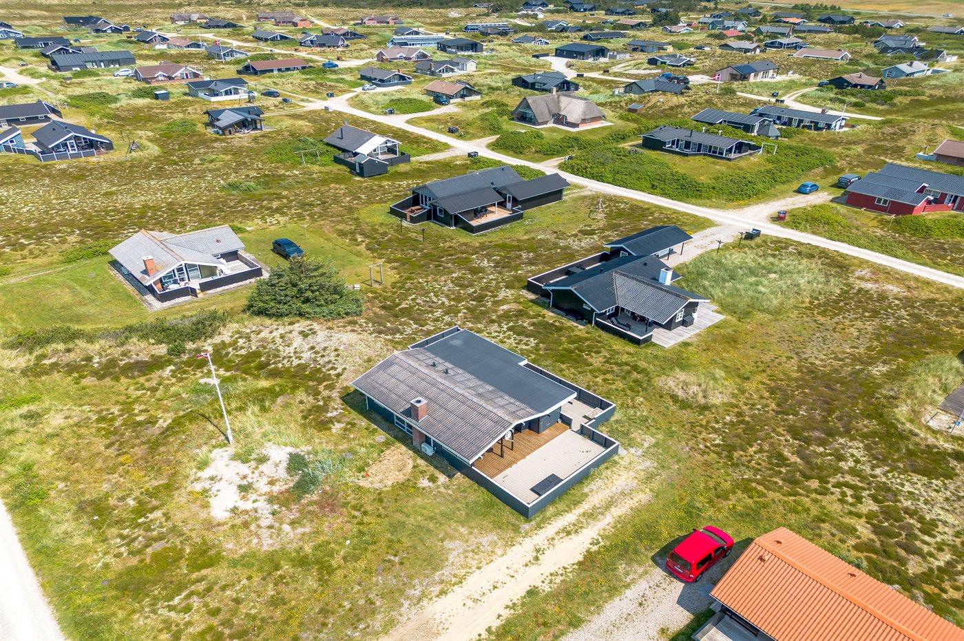 Ferieboligen er beliggende på en 1200 m² stor naturgrund. Der er 400 m til havet. Der er 520 m til fjorden. Nærmeste forretning er beliggende i en afstand af 2000 m. Til ferieboligen hører 74 m² terrasseareal. Til ferieboligen hører 44 m² åben terrasse og 20 m² overdækket terrasse. Heraf 32 m² lukket terrasse. Heraf i alt 74 m² lukket terrasse. Der er redskabsrum. Sandkasse. Parkering ved ferieboligen.