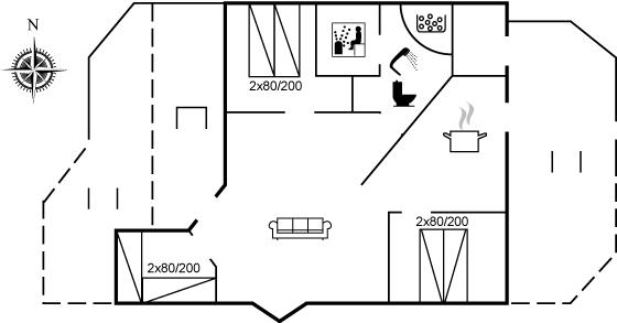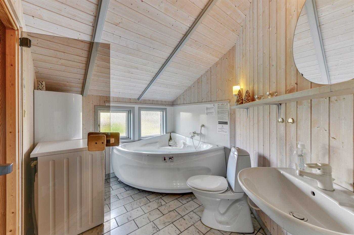 Der er 1 badeværelse med bruseniche og 1 toilet.. Der er gulvvarme på 1 badeværelse. I saunaen er der mulighed for afslapning.