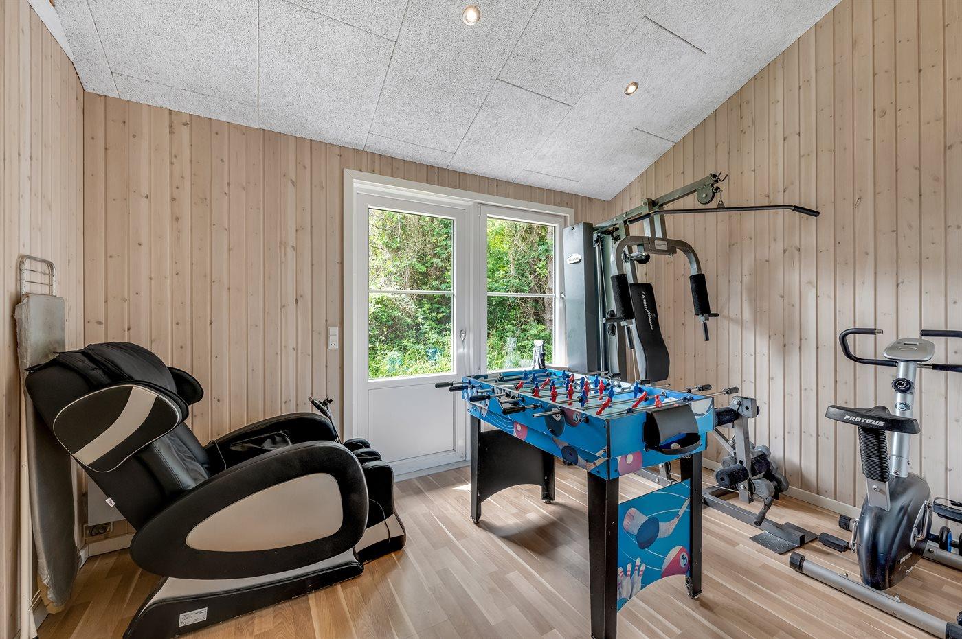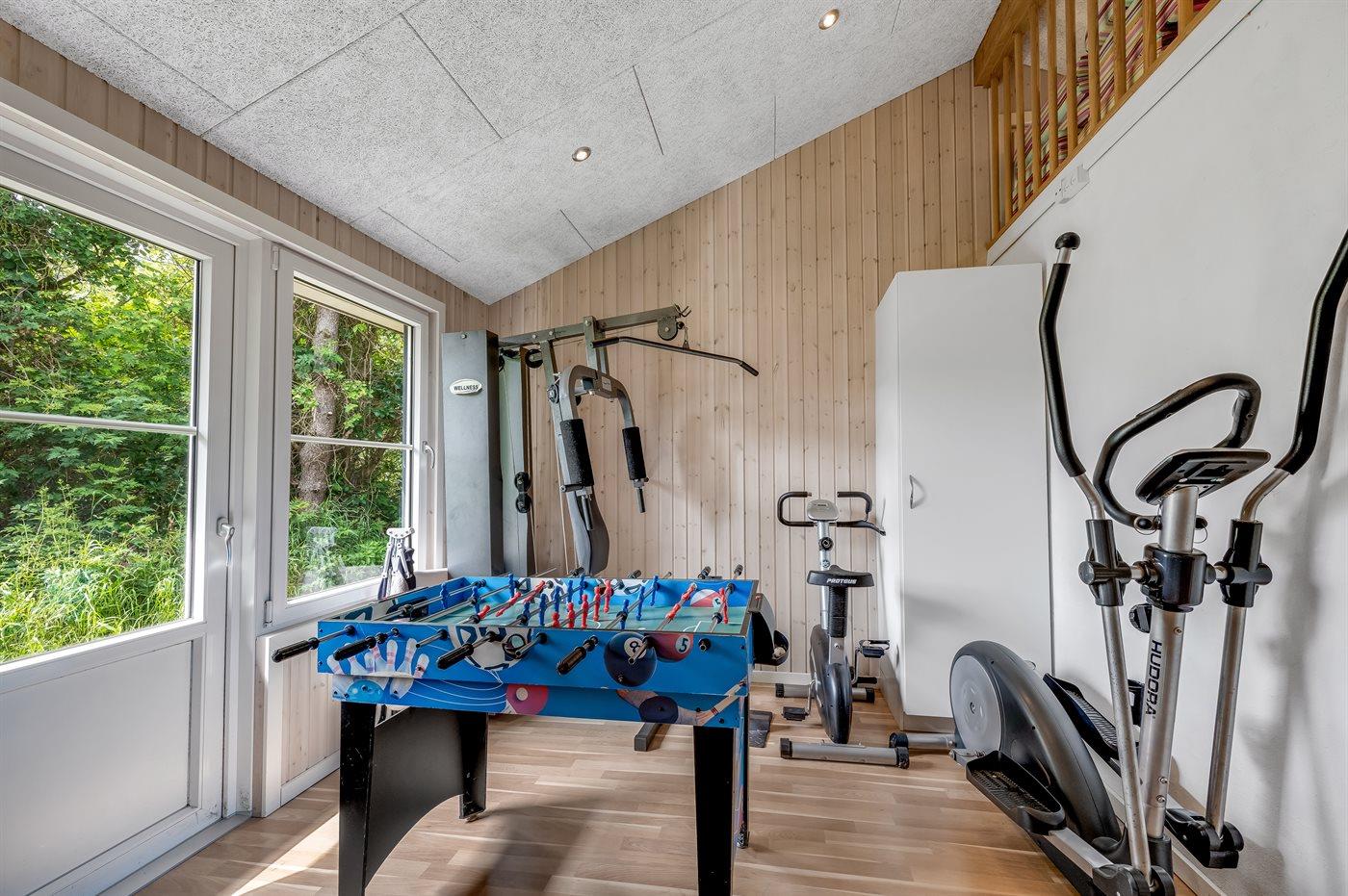 Dette velholdte sommerhus ligger midt imellem Vesterhavet og Ringkøbing Fjord - i et naturskønt område med gode muligheder for vandre- og cykelture. Huset er indrettet med et motionsrum, hvor I finder diverse motions udstyr.