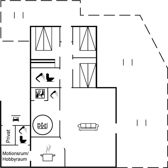 Der er 2 badeværelser med bruseniche og 2 toiletter. Der er gulvvarme på 1 badeværelse. I saunaen er der mulighed for afslapning.