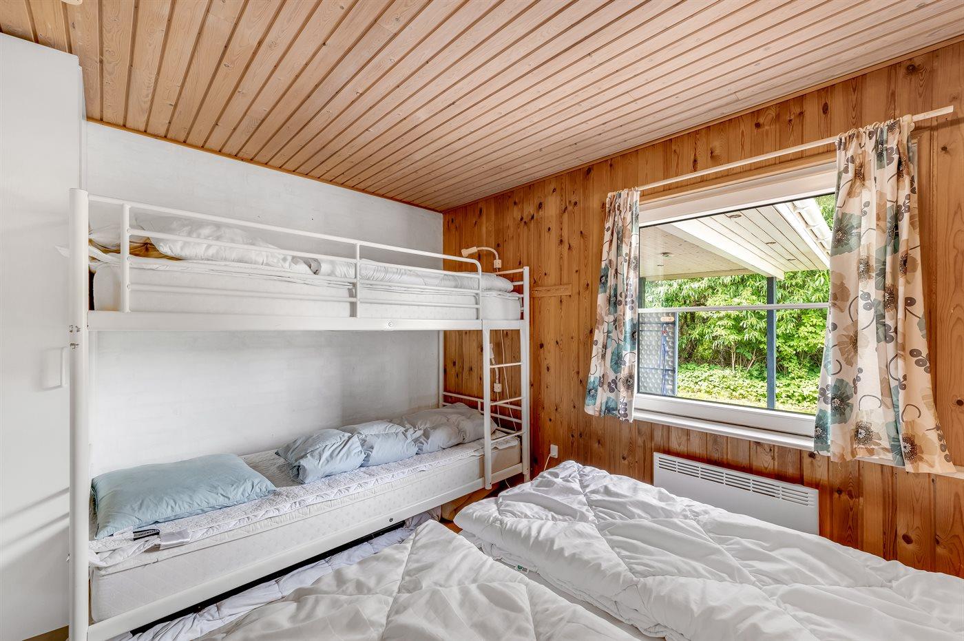 Der er i alt 3 soveværelser. Sovepladserne fordeler sig på: 6 sovepladser i dobbeltsenge. 2 sovepladser i køjeseng. Derudover er der 1 stk. barneseng.