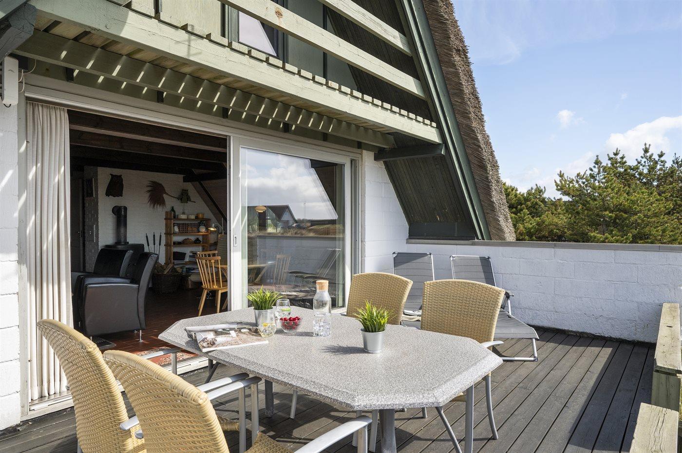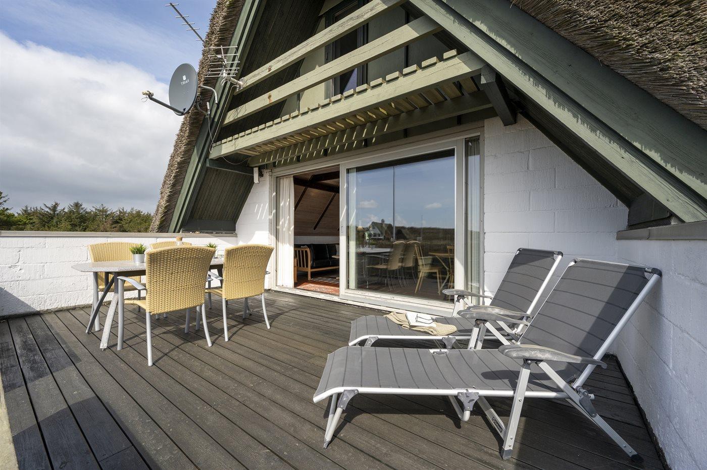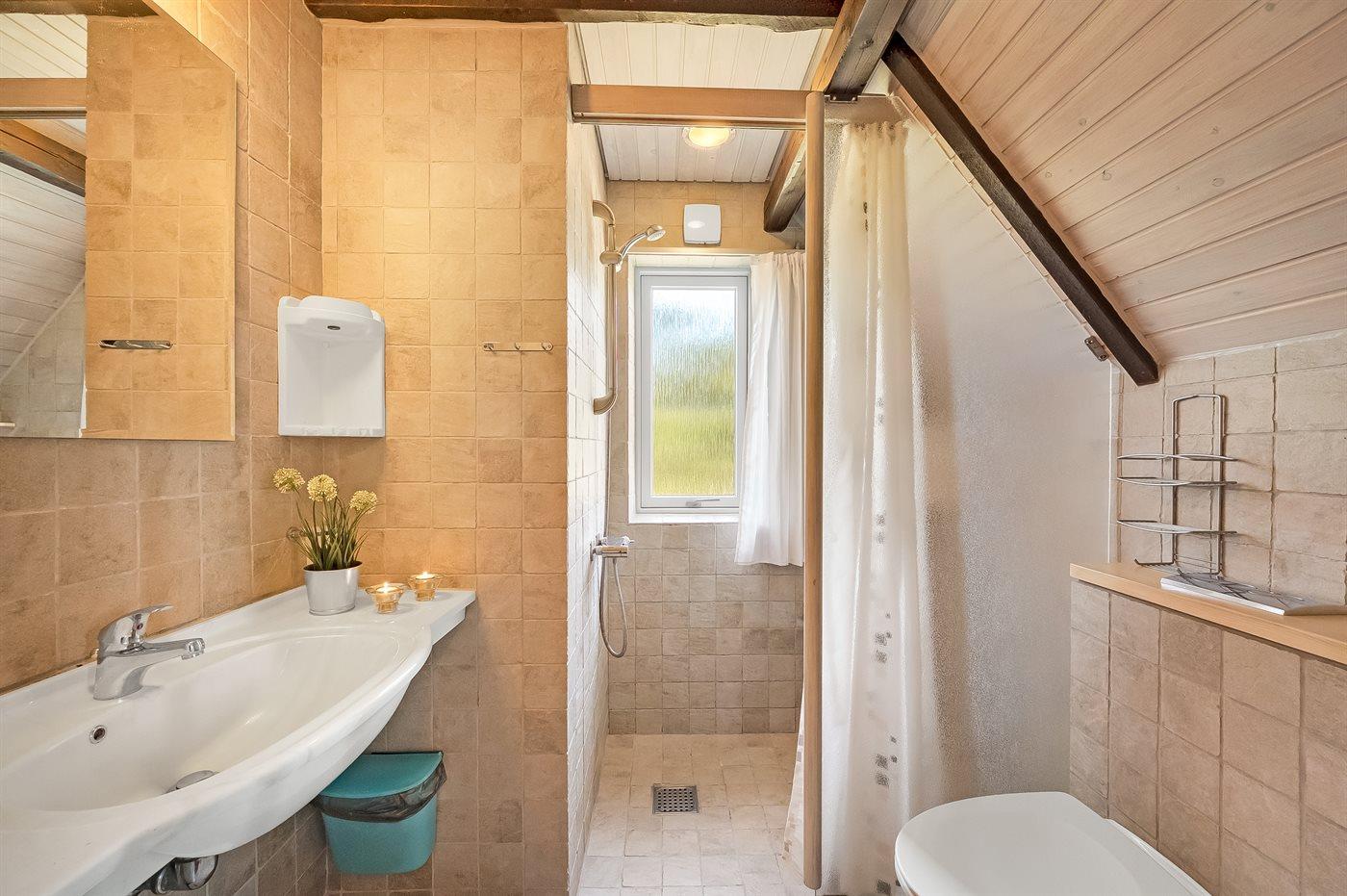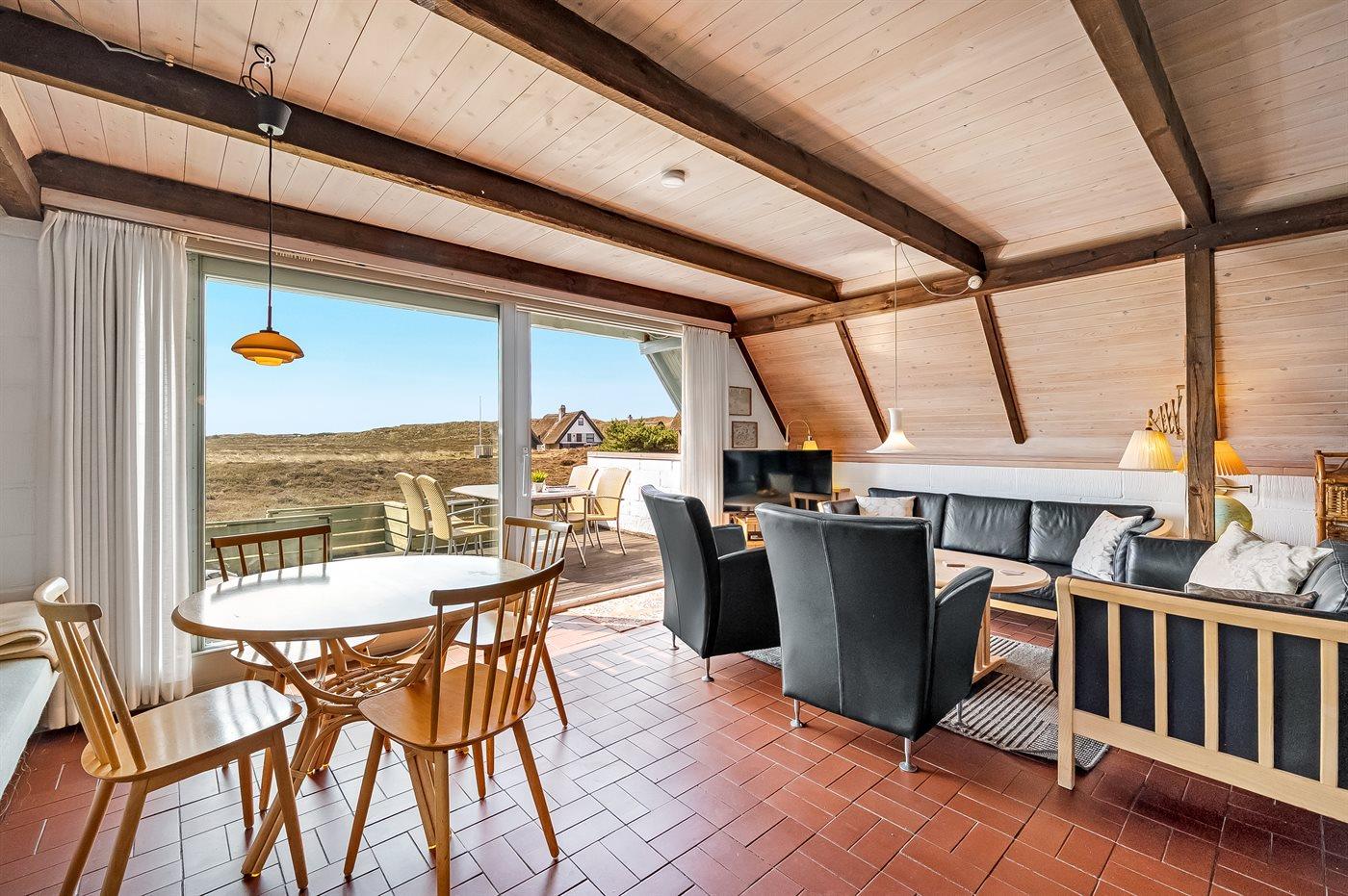 Hyggeligt 2-etagers sommerhus i sten med stråtag, bygget i 1972 og løbende renoveret, senest i 2011. Huset ligger på en naturgrund med skøn udsigt til dejligt lynglandskab - kun 500 m fra den dejlige sandstrand. Til huset hører åben terrasse med havemøbler. Det funktionelle køkken, med bl.a. opvaskemaskine, komfur med keramiske kogeplader og køleskab med separat fryser, er kombineret med stuen, som bl.a. indeholder brændeovn, DVD-afspiller og TV med parabol (digital). Badeværelse med gulvvarme og bruser. Via en vindeltrappe finder I soveværelserne på 1. sal.; 1 med dobbeltseng og 1 med 3 enkeltsenge. Af yderligere udstyr kan gratis, trådløs internetforbindelse (computer skal medbringes), vaskemaskine, barneseng og høj barnestol nævnes. Sandkasse og gynge på grunden.