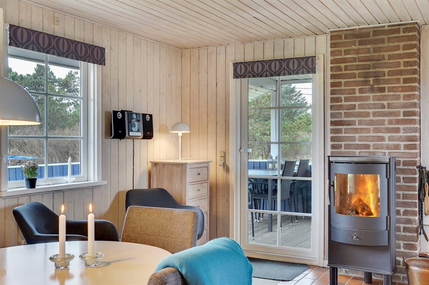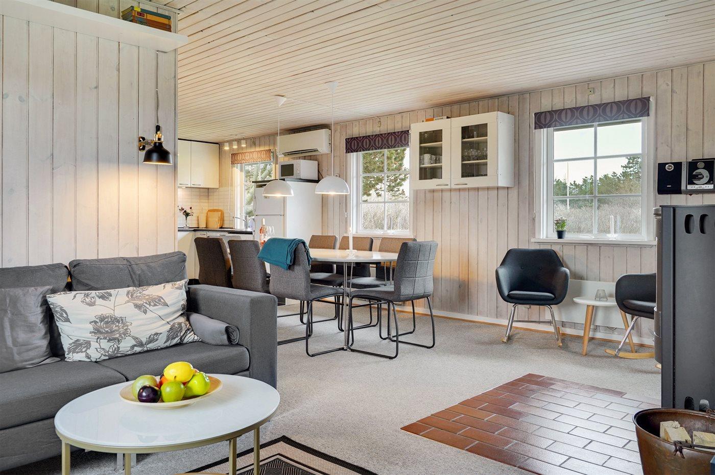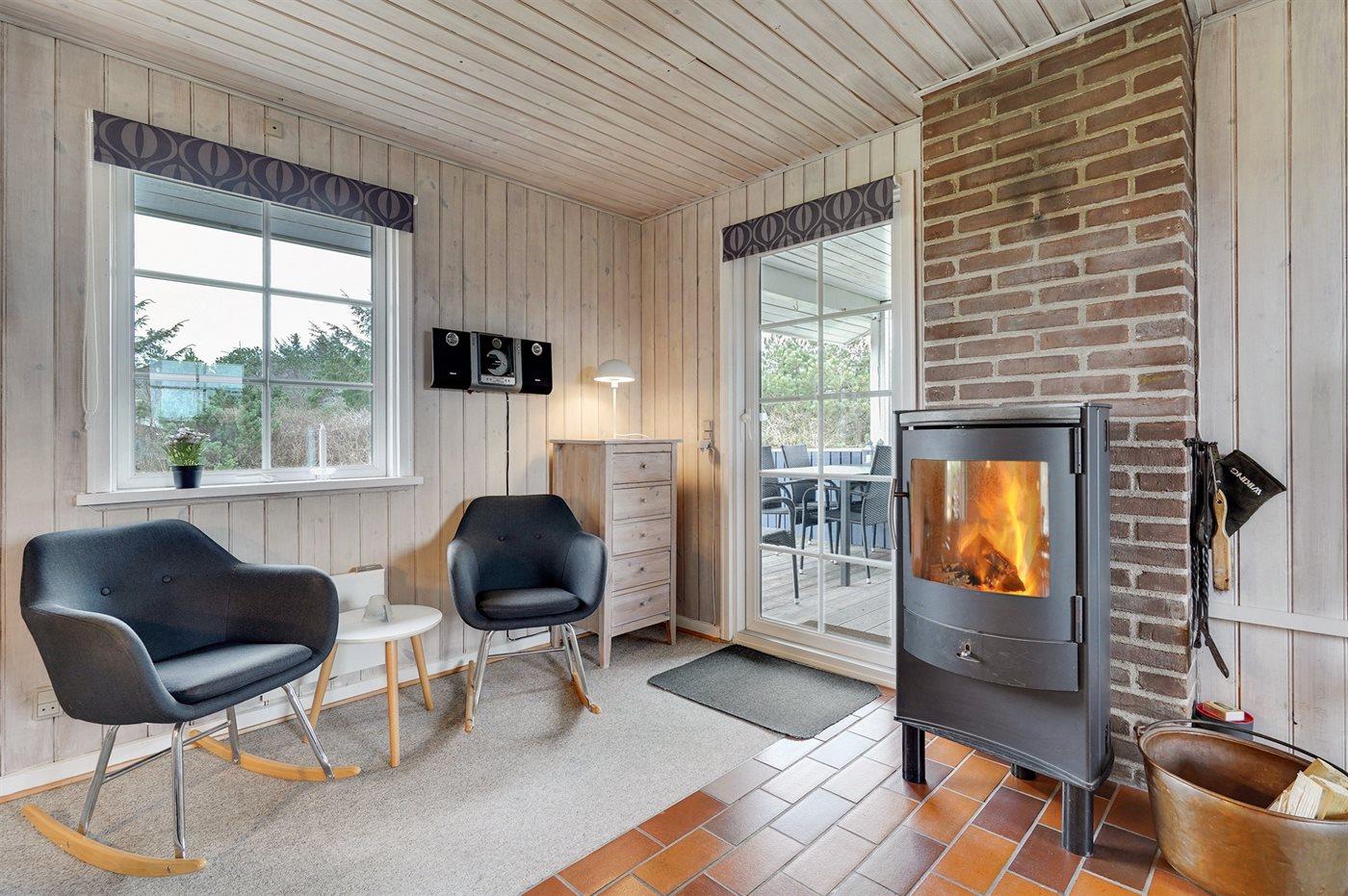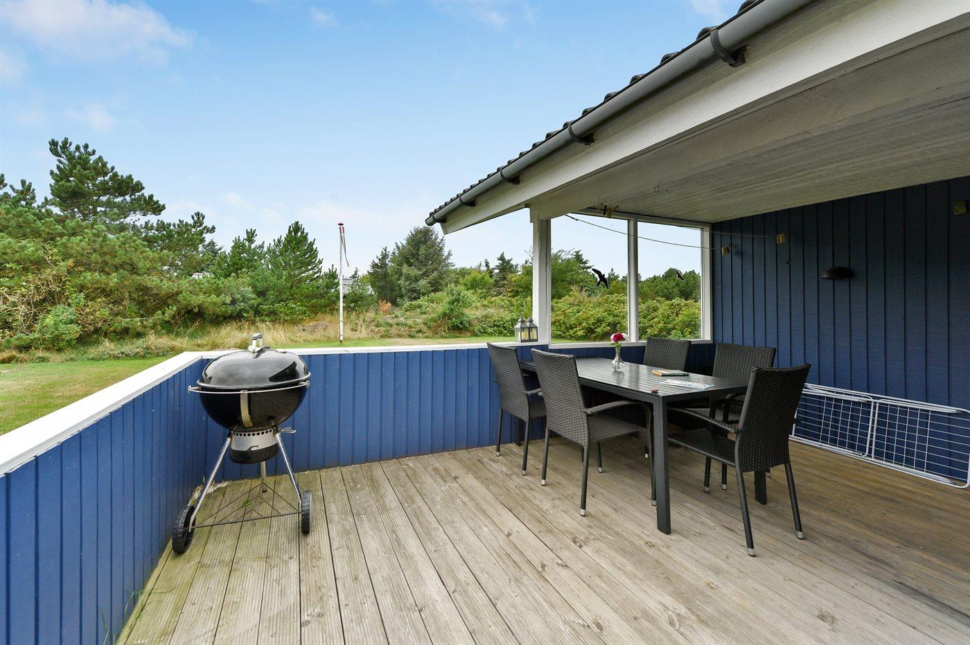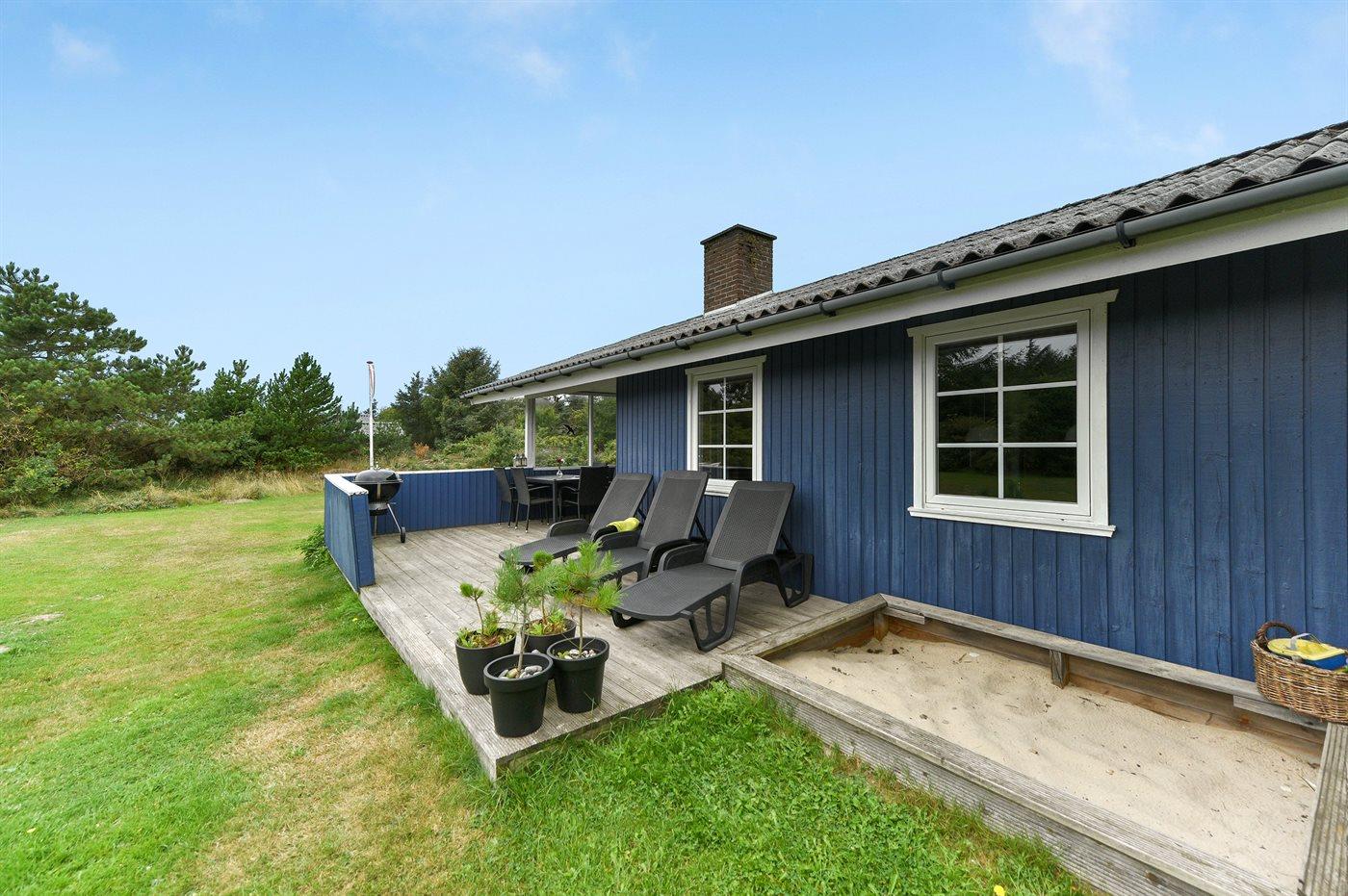 Dette dejlige, velholdte sommerhus ligger på en stor grund på en stille vej, midt imellem Vesterhavet og Ringkøbing Fjord. Det naturskønne område byder på gode muligheder for vandre- og cykelture. Til sommerhuset hører en dejlig, delvist overdækket terrasse – her kan I slappe af og nyde udsigten over grunden.