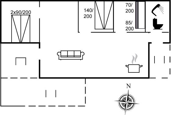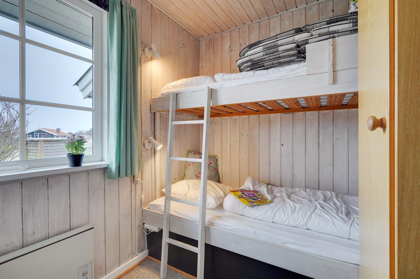 Der er i alt 3 soveværelser. Sovepladserne fordeler sig på: 4 sovepladser i dobbeltsenge. 2 sovepladser i køjeseng. Derudover er der 1 stk. barneseng.