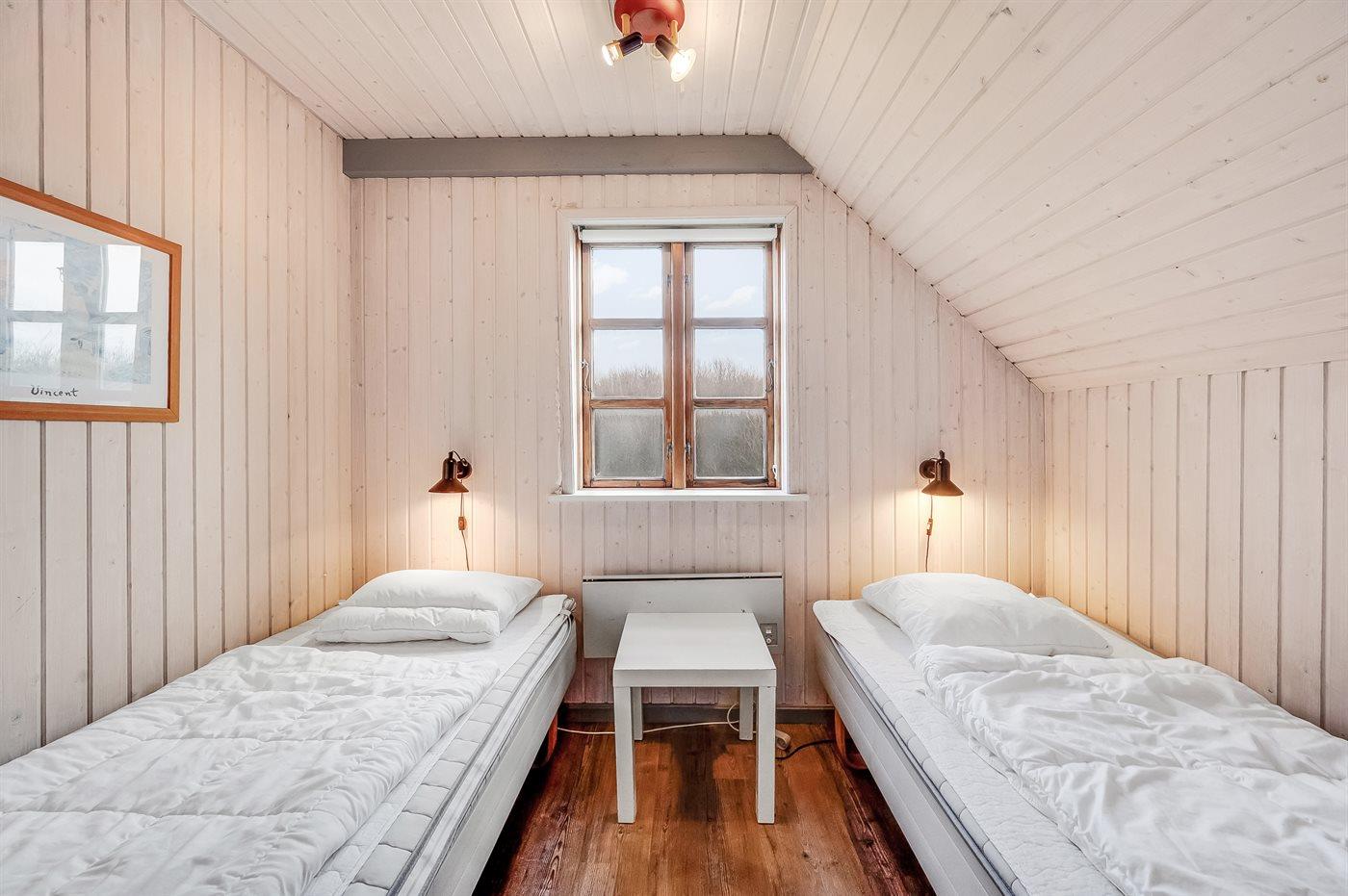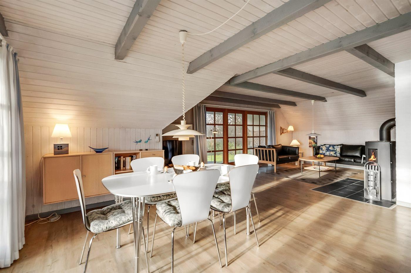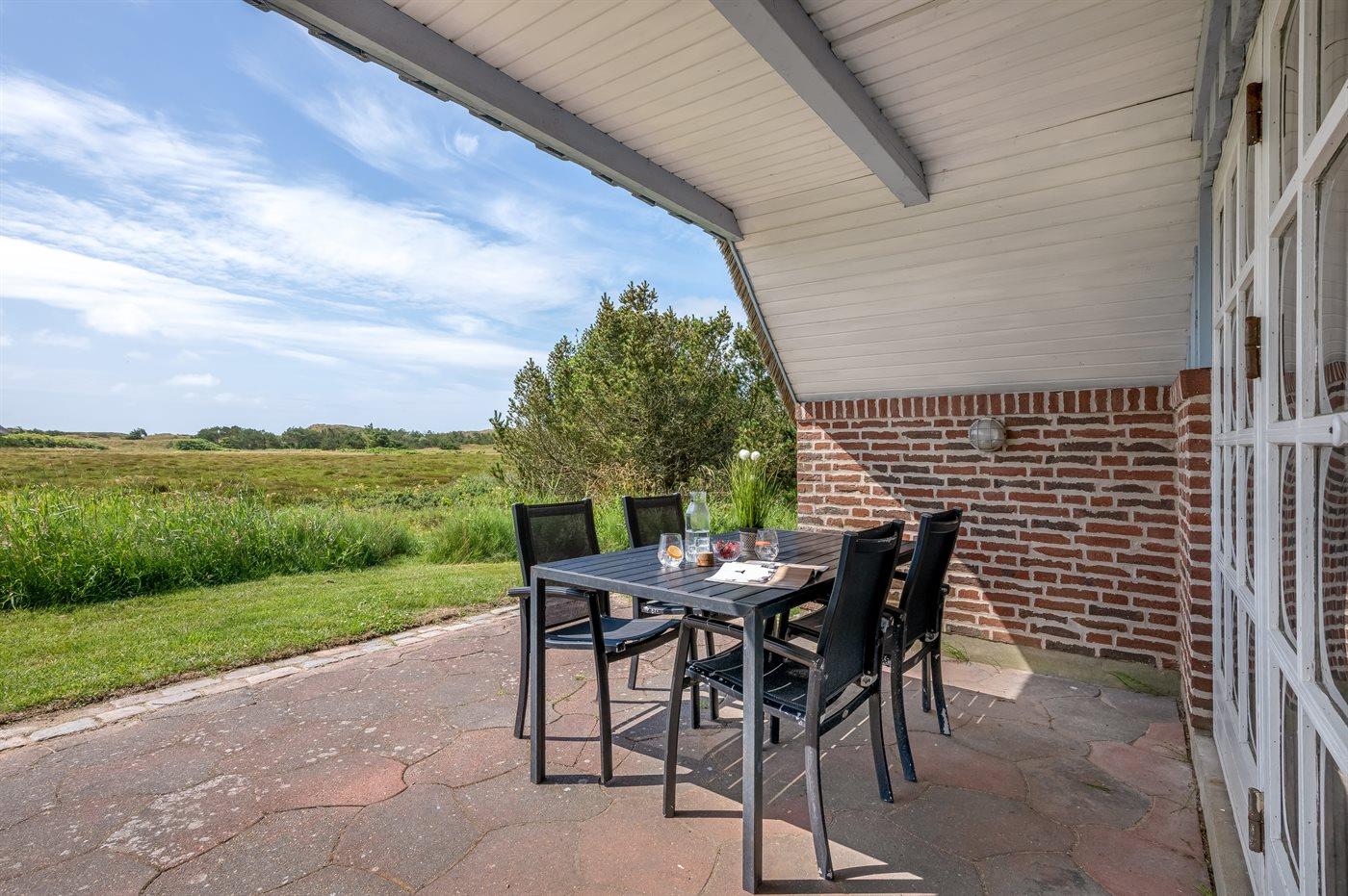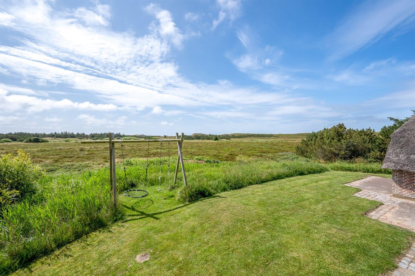Hyggeligt og rummeligt sommerhus i sten med stråtag beliggende på dejlig naturgrund bevokset med lyng og lille vandløb. Huset er beliggende i fredelige omgivelser og har såvel åbent som overdækket terrasseareal med havemøbler. Fra den delvist overdækkede terrasse er der en dejlig og ugenert udsigt over klitlandskabet. Flisegulve i køkken og badeværelse, gulvtæpper i stuen og på værelserne. Badeværelse med bruseniche, vaskemaskine og gulvvarme. Gæstetoilet. Velfungerende køkken med bl.a. mikrobølgeovn og opvaskemaskine. Der er indlagt gulvvarme i køkkenet. Hyggelig opholdsstue med brændeovn og TV med parabol (digital). Fra opholdsstuen er der desuden adgang til den delvist overdækkede terrasse. Der er gynge til børnene. 2 soveværelser med dobbeltseng samt 1 værelse med 2 enkeltsenge. Af yderligere udstyr kan gratis, trådløs internetforbindelse (computer skal medbringes) og varmepumpe nævnes. Et godt og hyggeligt sommerhus i rolige omgivelser.