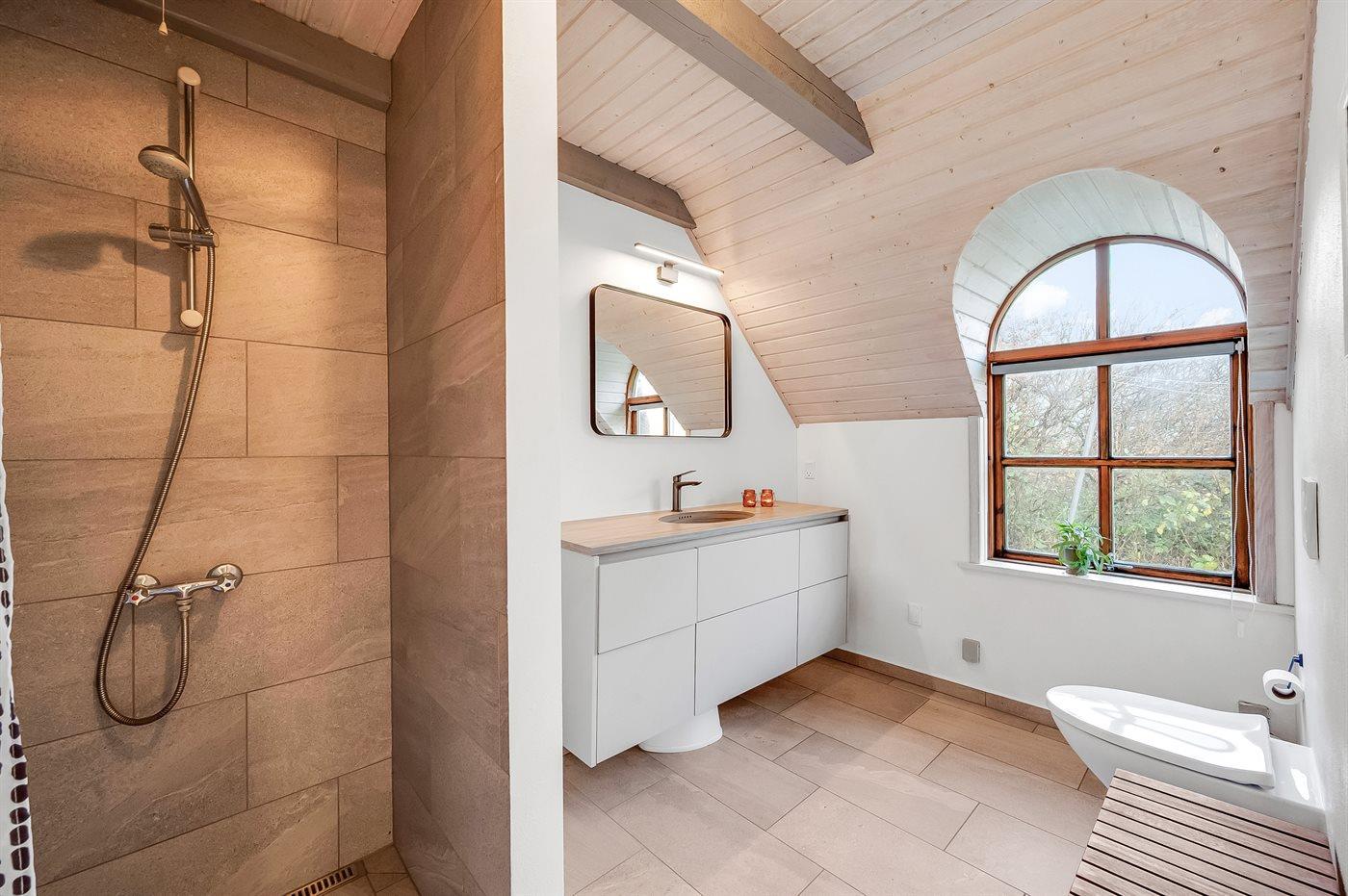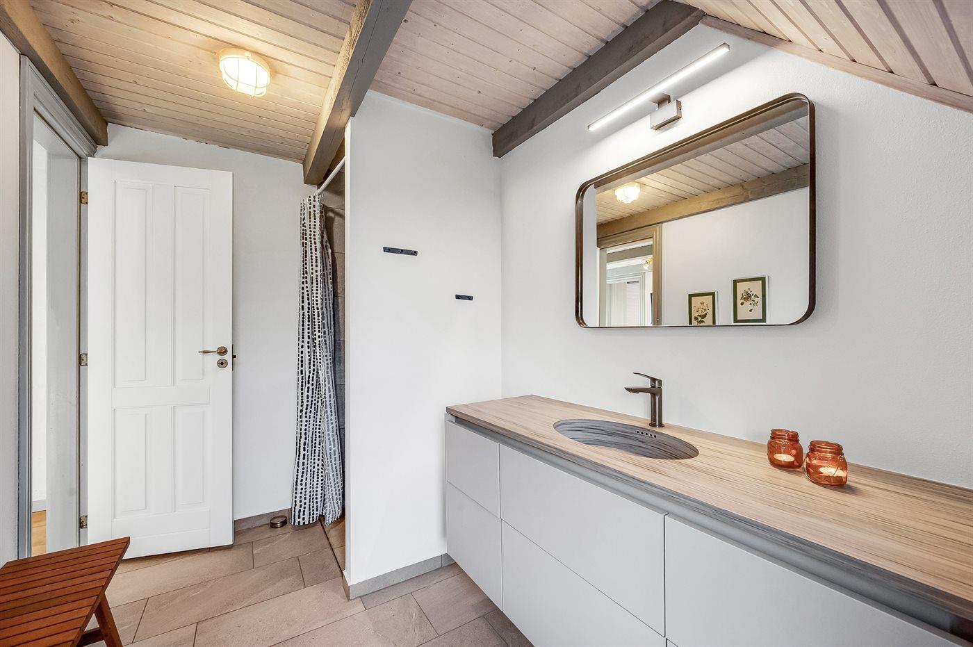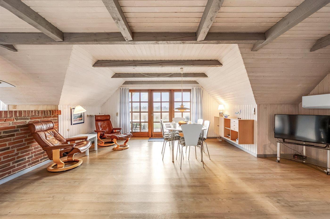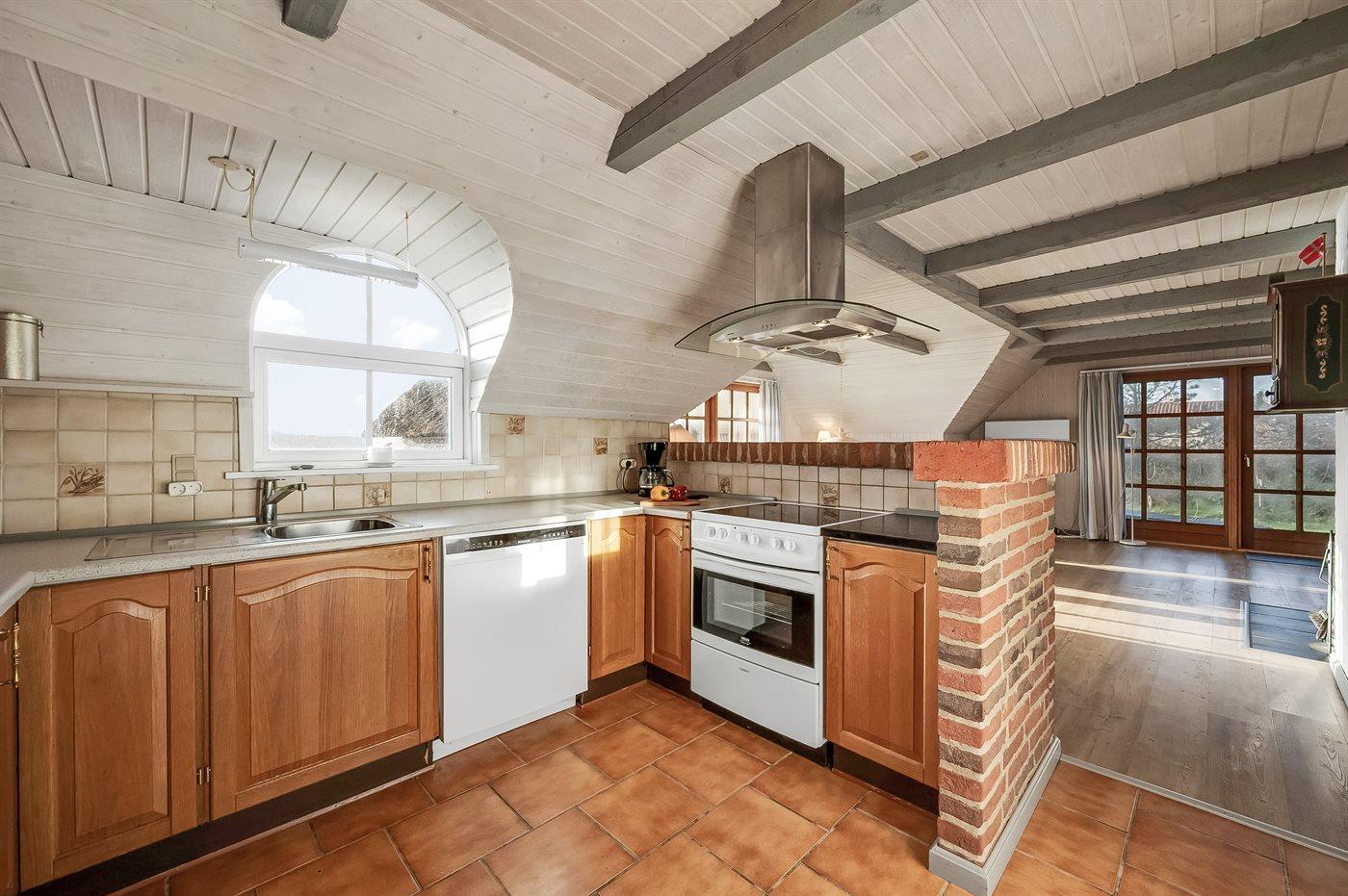 Hyggeligt og rummeligt sommerhus i sten med stråtag beliggende på dejlig naturgrund bevokset med lyng og lille vandløb. Huset er beliggende i fredelige omgivelser og har såvel åbent som overdækket terrasseareal med havemøbler. Fra den delvist overdækkede terrasse er der en dejlig og ugenert udsigt over klitlandskabet. Flisegulve i køkken og badeværelse, gulvtæpper i stuen og på værelserne. Badeværelse med bruseniche, vaskemaskine og gulvvarme. Gæstetoilet. Velfungerende køkken med bl.a. mikrobølgeovn og opvaskemaskine. Der er indlagt gulvvarme i køkkenet. Hyggelig opholdsstue med brændeovn og TV med parabol (digital). Fra opholdsstuen er der desuden adgang til den delvist overdækkede terrasse. Der er gynge til børnene. 2 soveværelser med dobbeltseng samt 1 værelse med 2 enkeltsenge. Af yderligere udstyr kan gratis, trådløs internetforbindelse (computer skal medbringes) og varmepumpe nævnes. Et godt og hyggeligt sommerhus i rolige omgivelser.