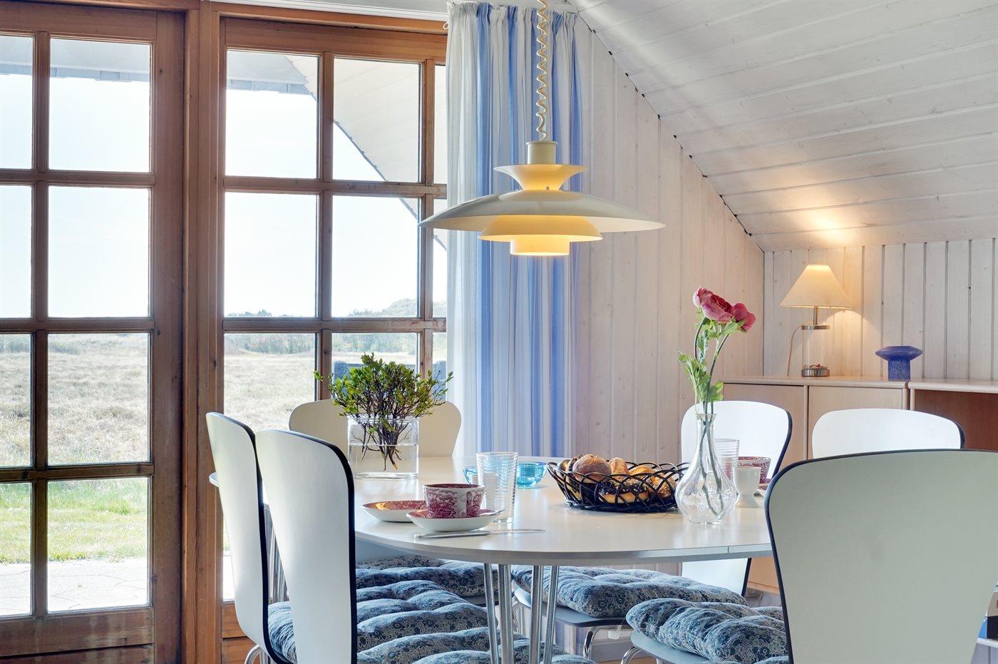 Hyggeligt sommerhus med stråtag og ugenert udsigt over klitlandskab i rolige omgivelser ved Hvide Sande.
