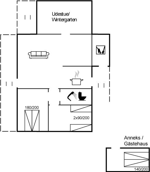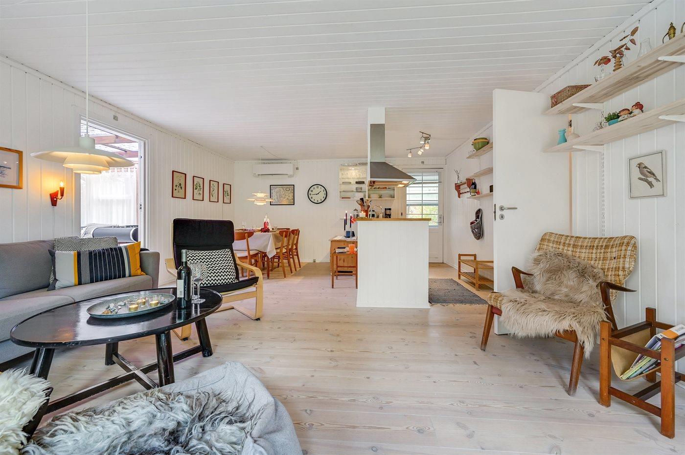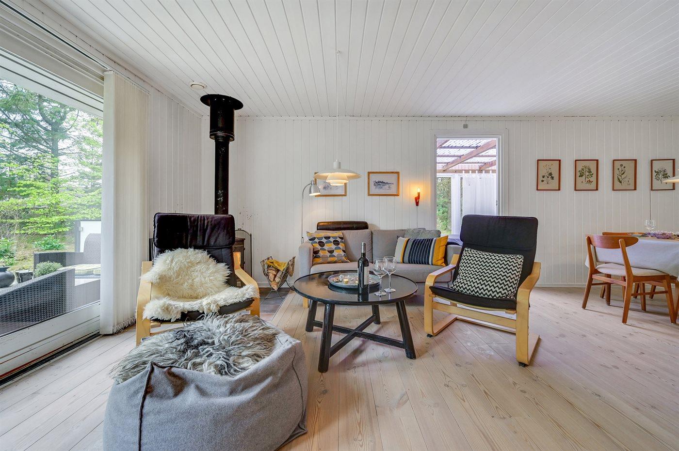 Huset er indrettet med en hyggelig og velindrettet opholdsstue med brændeovn (inkl. børnesikring), gratis fibernet med WiFi højhastighedsforbindelse og 30 TV-kanaler (bl.a. 10 tyske, 8 danske samt svenske og norske), samt Wii, Chromecast, radio og mange brætspil. Sovepladserne er fordelt med 1 soveværelse med stor dobbeltseng, 1 værelse med 2 enkeltsenge samt 1 dobbeltseng i det fritliggende anneks (står til rådighed fra 1. april til 1. oktober). Det charmerende hus byder desuden på et velfungerende køkken med opvaskemaskine, et nyrenoveret badeværelse med gulvvarme samt en herlig lys udestue med komfortable møbler, bordfodbold og en daybed. Der er barnestol, barneseng, sandkasse og gynge til rådighed for de yngste, ligesom der på de brede træterrasser forefindes to sæt havemøbler samt grill. Dette meget indbydende sommerhus vil naturligvis være opvarmet ved ankomst, og er i øvrigt energioptimeret i 2019 med varmepumpe, efterisolering og super-lavenergiruder.