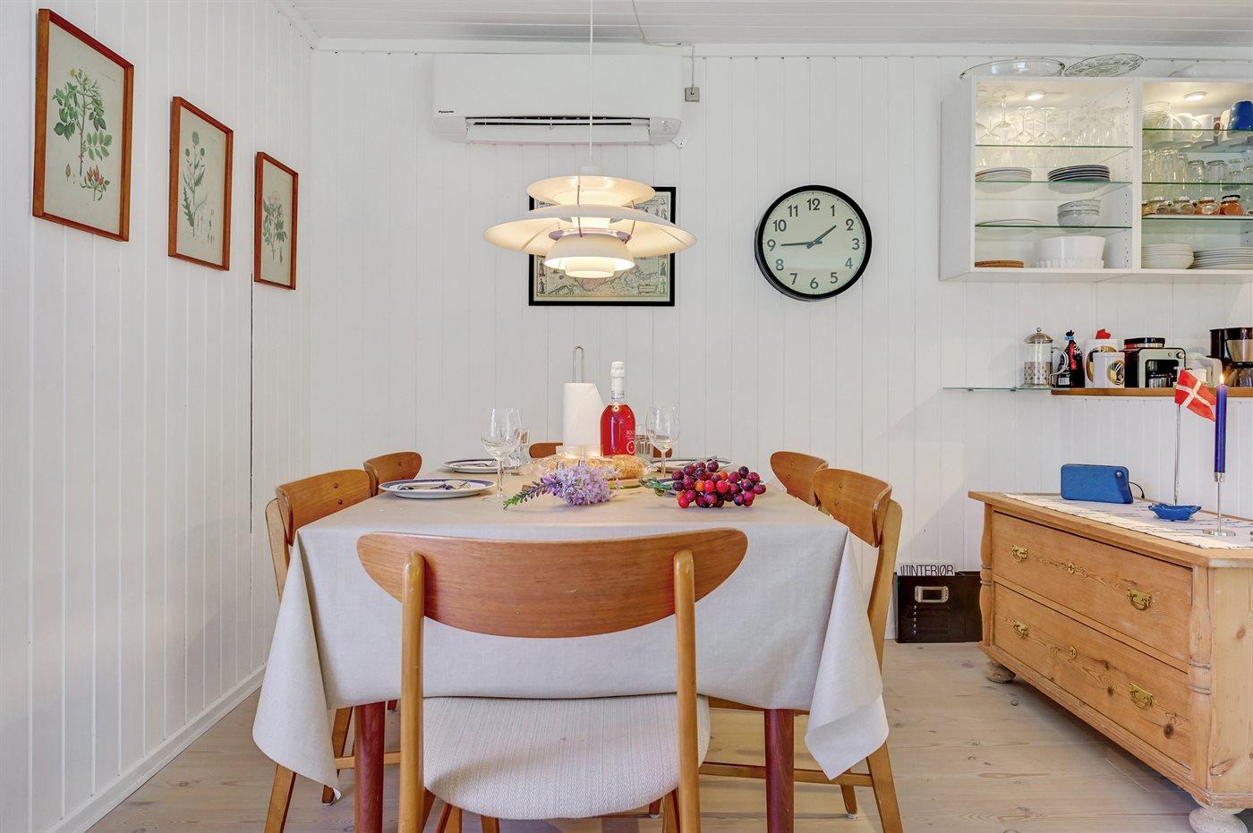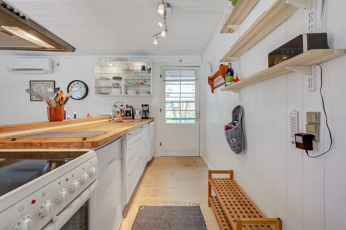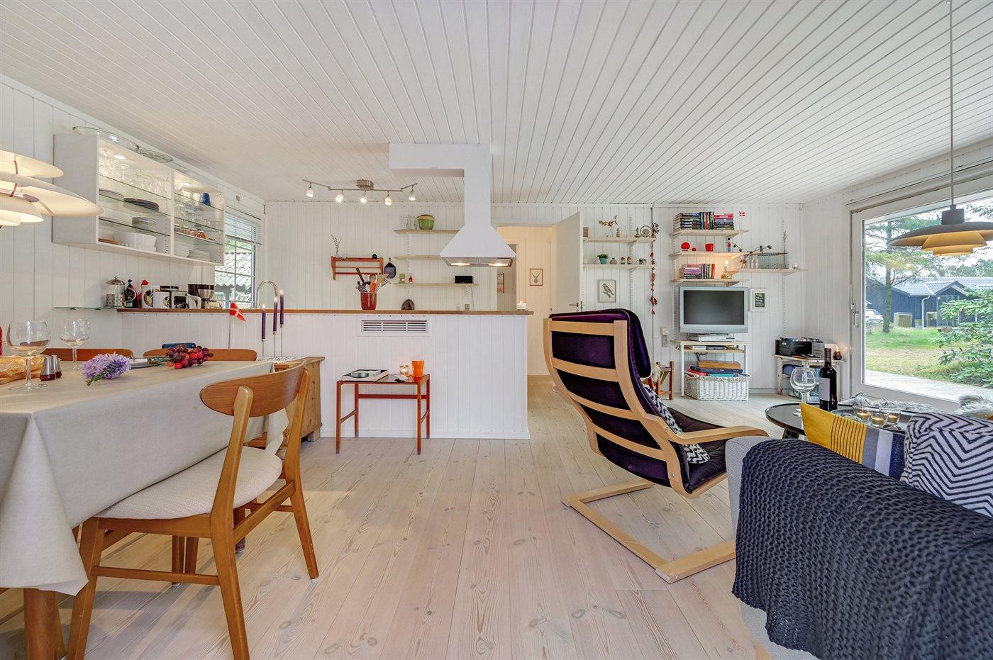 Huset er indrettet med en hyggelig og velindrettet opholdsstue med brændeovn (inkl. børnesikring), gratis fibernet med WiFi højhastighedsforbindelse og 30 TV-kanaler (bl.a. 10 tyske, 8 danske samt svenske og norske), samt Wii, Chromecast, radio og mange brætspil. Sovepladserne er fordelt med 1 soveværelse med stor dobbeltseng, 1 værelse med 2 enkeltsenge samt 1 dobbeltseng i det fritliggende anneks (står til rådighed fra 1. april til 1. oktober). Det charmerende hus byder desuden på et velfungerende køkken med opvaskemaskine, et nyrenoveret badeværelse med gulvvarme samt en herlig lys udestue med komfortable møbler, bordfodbold og en daybed. Der er barnestol, barneseng, sandkasse og gynge til rådighed for de yngste, ligesom der på de brede træterrasser forefindes to sæt havemøbler samt grill. Dette meget indbydende sommerhus vil naturligvis være opvarmet ved ankomst, og er i øvrigt energioptimeret i 2019 med varmepumpe, efterisolering og super-lavenergiruder.