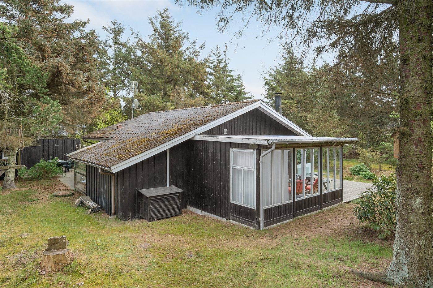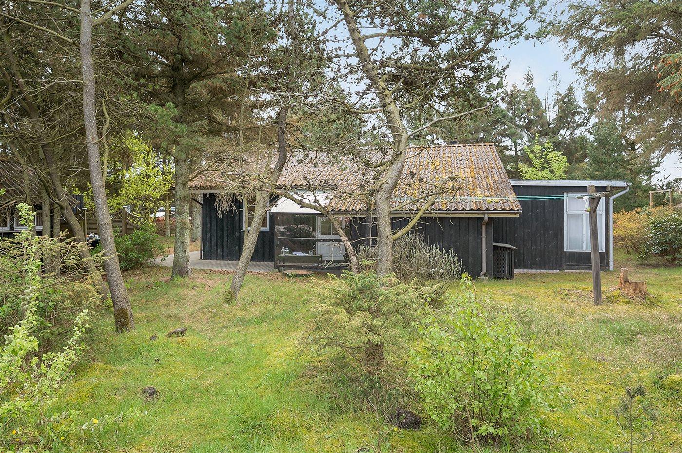 Et dejligt 4+2 personers træhus fra 1976 med udestue og anneks, beliggende på en skøn, uforstyrret naturgrund omkranset af fyrretræer, som skærmer for både indkig og vind. Huset ligger på Bjerregaards sydligste stikvej lige ved skoven og det fredede hedeareal, og med kun 700 meter til det fantastiske Vesterhav, Ringkøbing Fjord og områdets velassorterede købmand. Den unikke beliggenhed giver sammen med den sorte træfacade, de hvide sprossevinduer samt det lyse plankegulv den helt rigtige sommerhusstemning. I området er der optimale muligheder for en badetur, vandreture, lystfiskeri, surfing, mountainbiking, golf, shopping, kulinariske oplevelser eller bare at nyde solen…