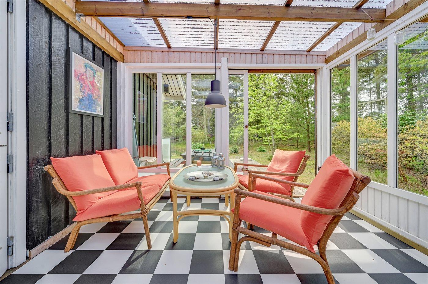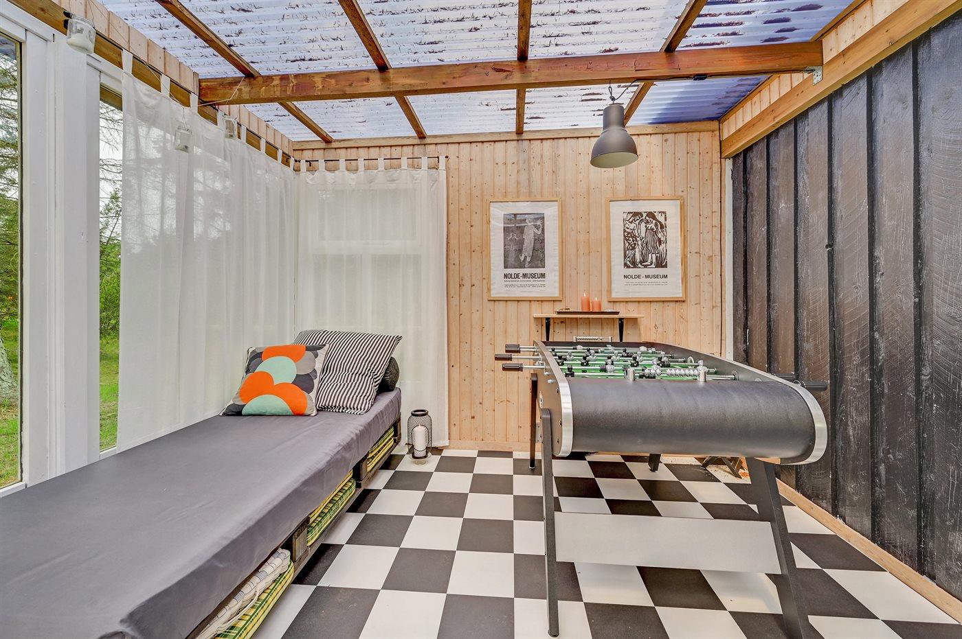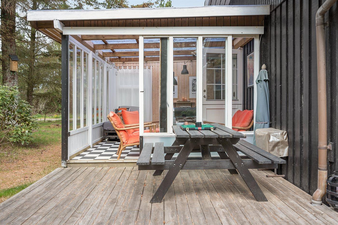 Hyggeligt træsommerhus med udestue og anneks nær Vesterhavet, skov og fjord i Bjerregård.