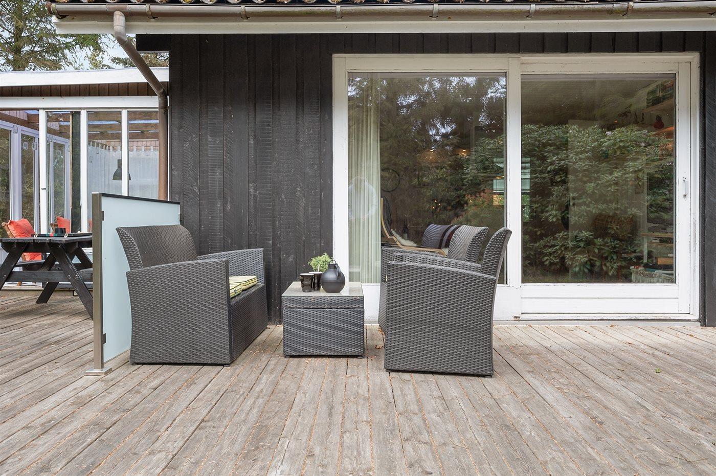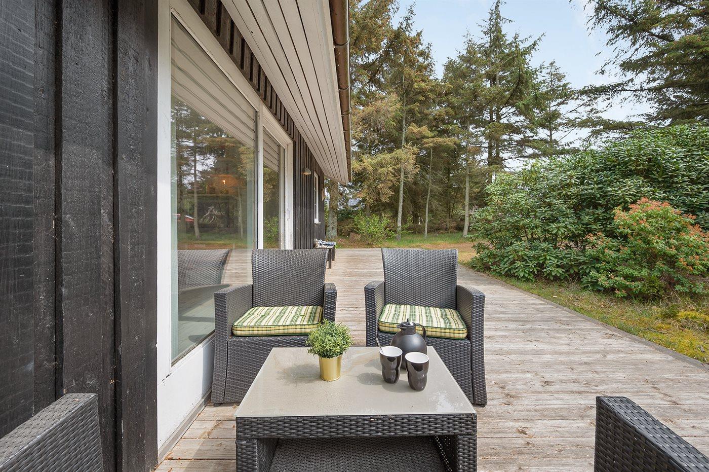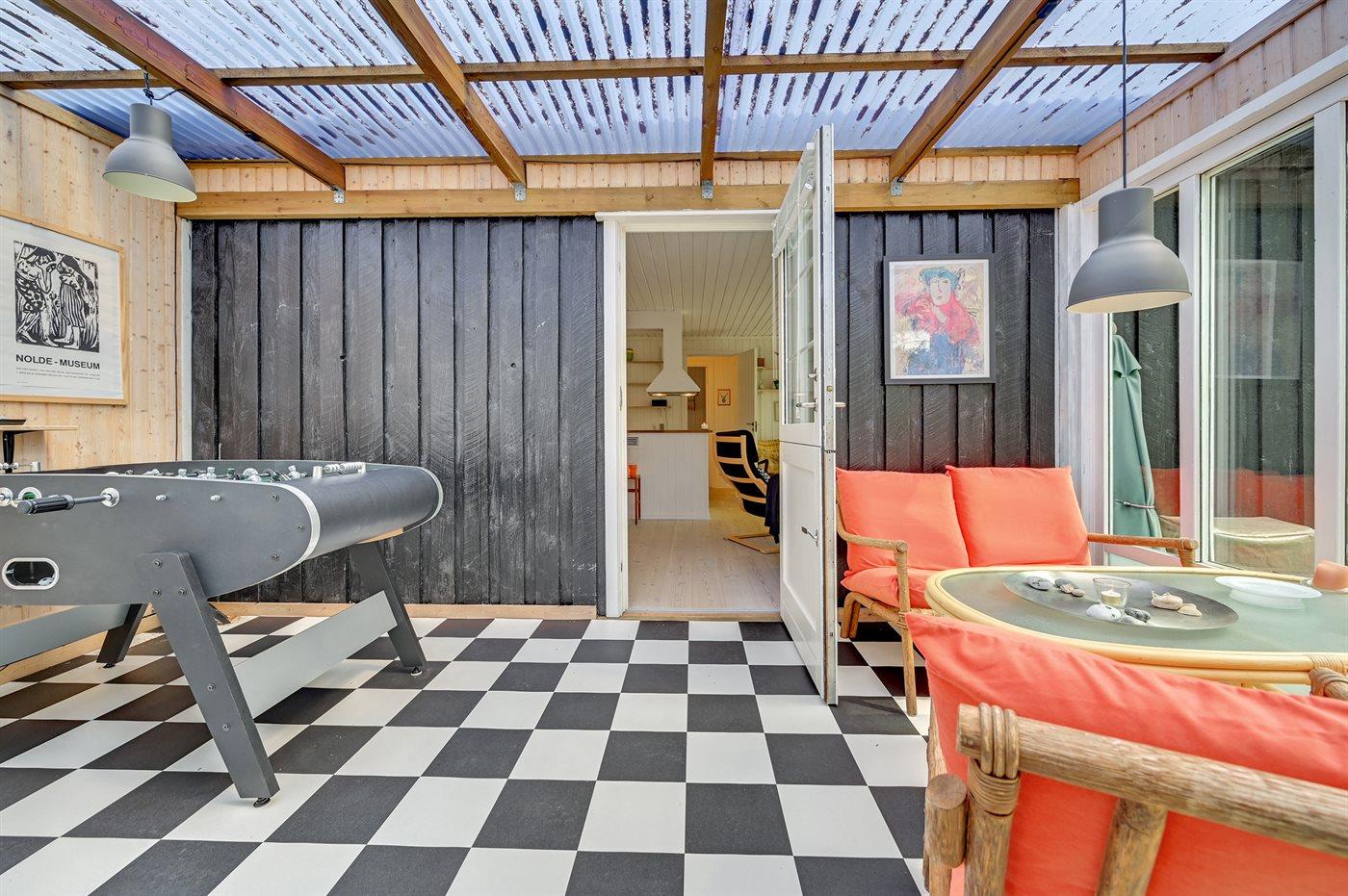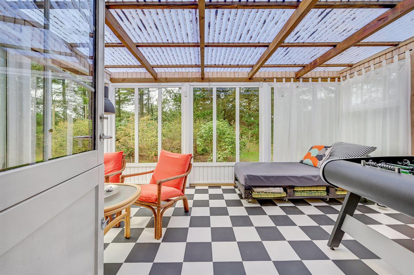 Hyggeligt træsommerhus med udestue og anneks nær Vesterhavet, skov og fjord i Bjerregård.