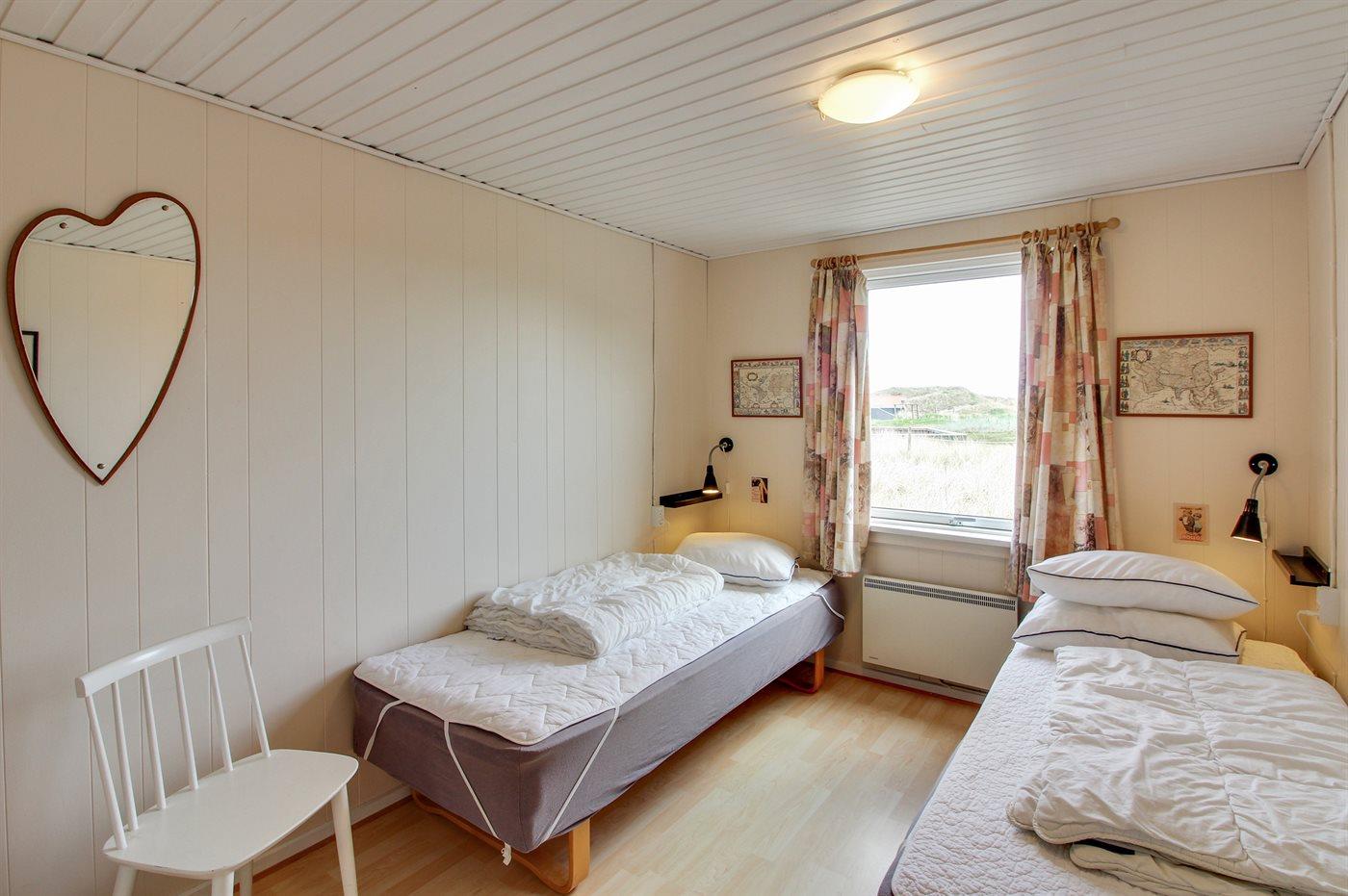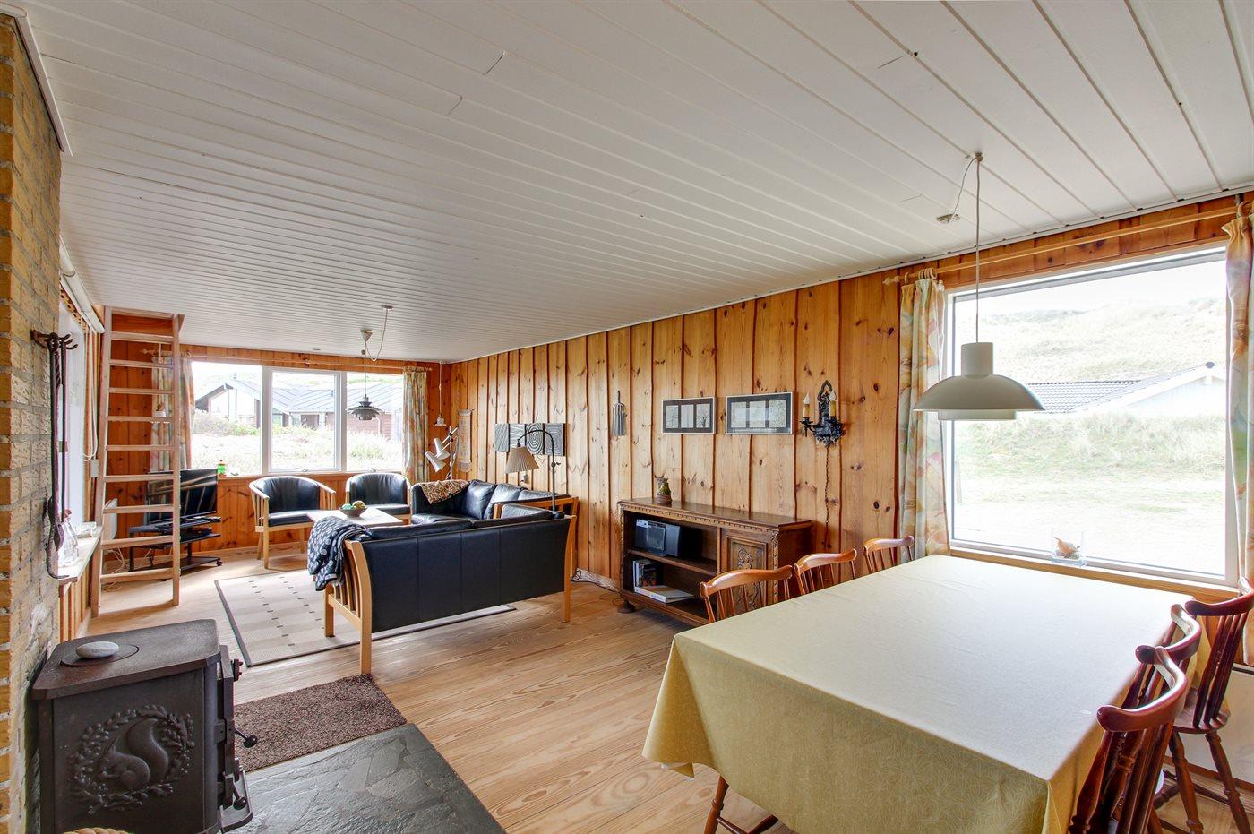 Dette sommerhus ligger på en klitgrund - kun 80 m fra strand og vand. Til huset hører såvel åben som overdækket terrasse med havemøbler. Der findes en hems, som er indrettet med et lille legerum til børnene.
