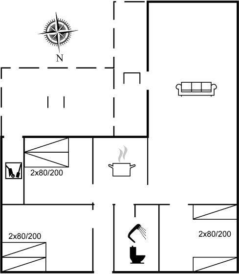 Der er i alt 3 soveværelser. Sovepladserne fordeler sig på: 2 sovepladser i dobbeltseng. 4 sovepladser i enkeltsenge.