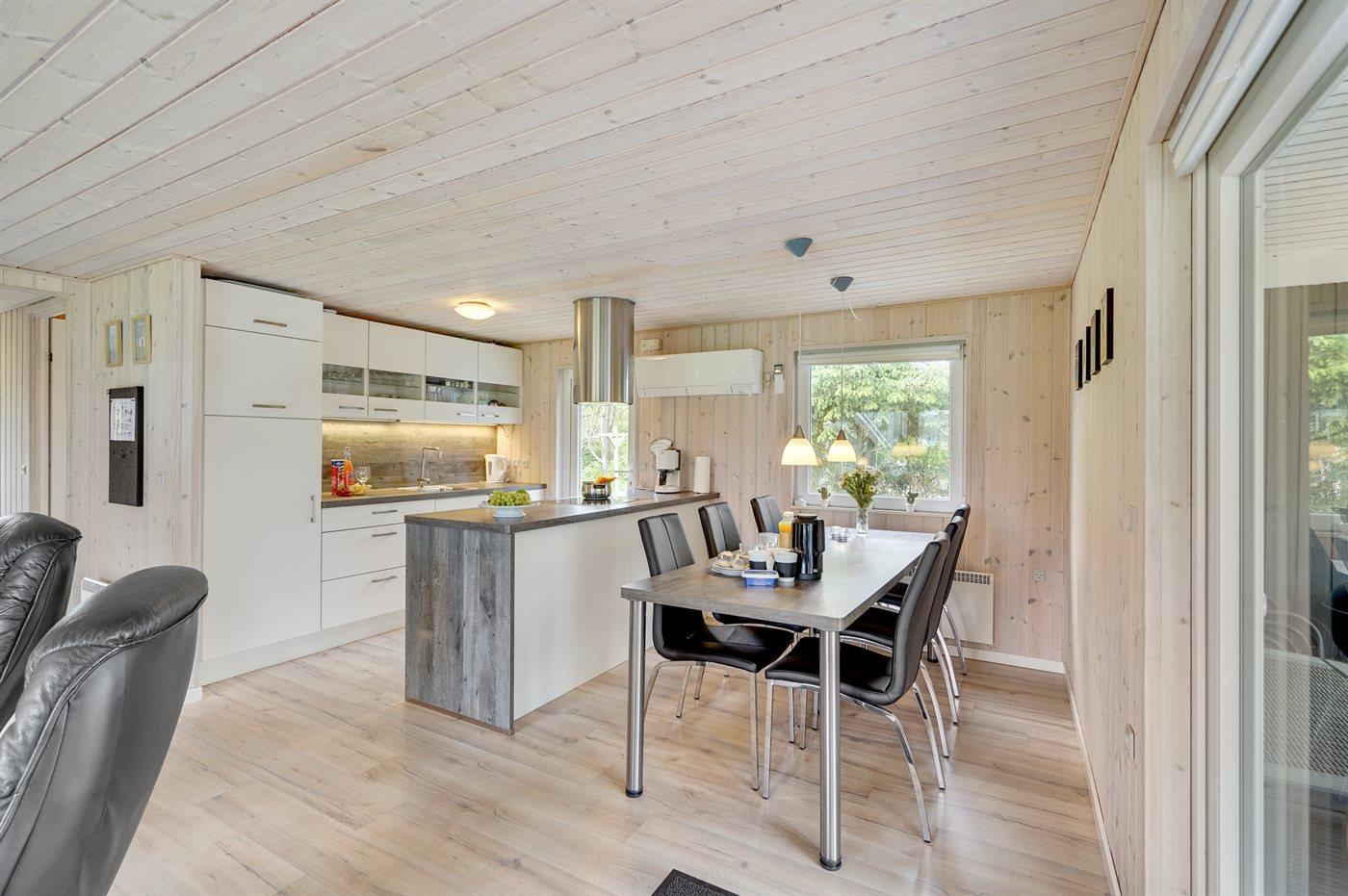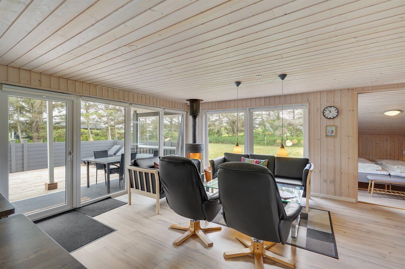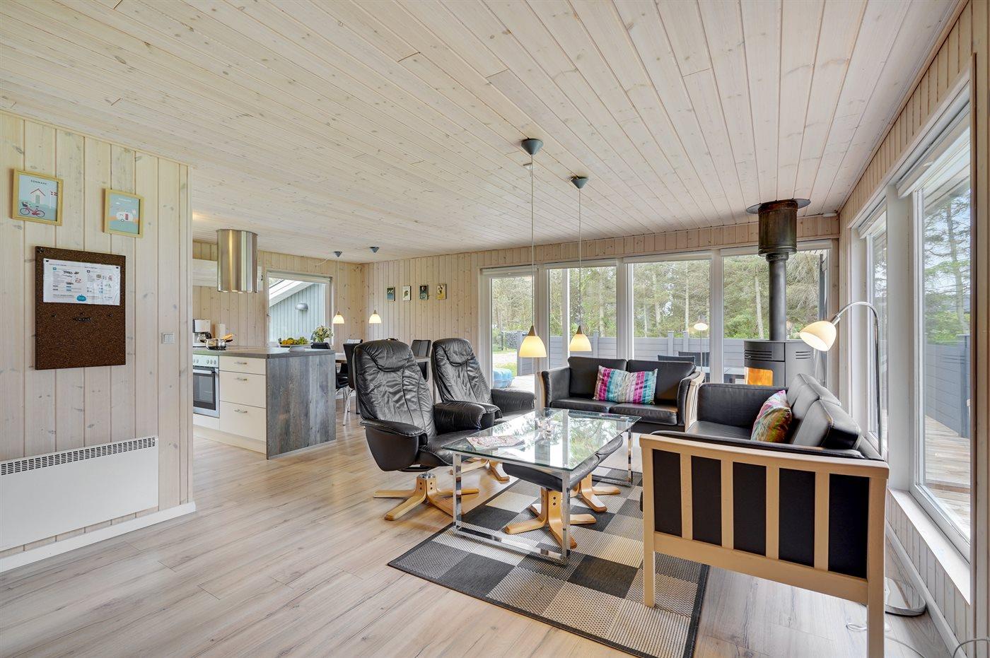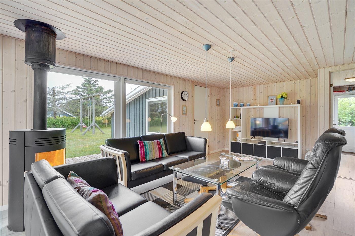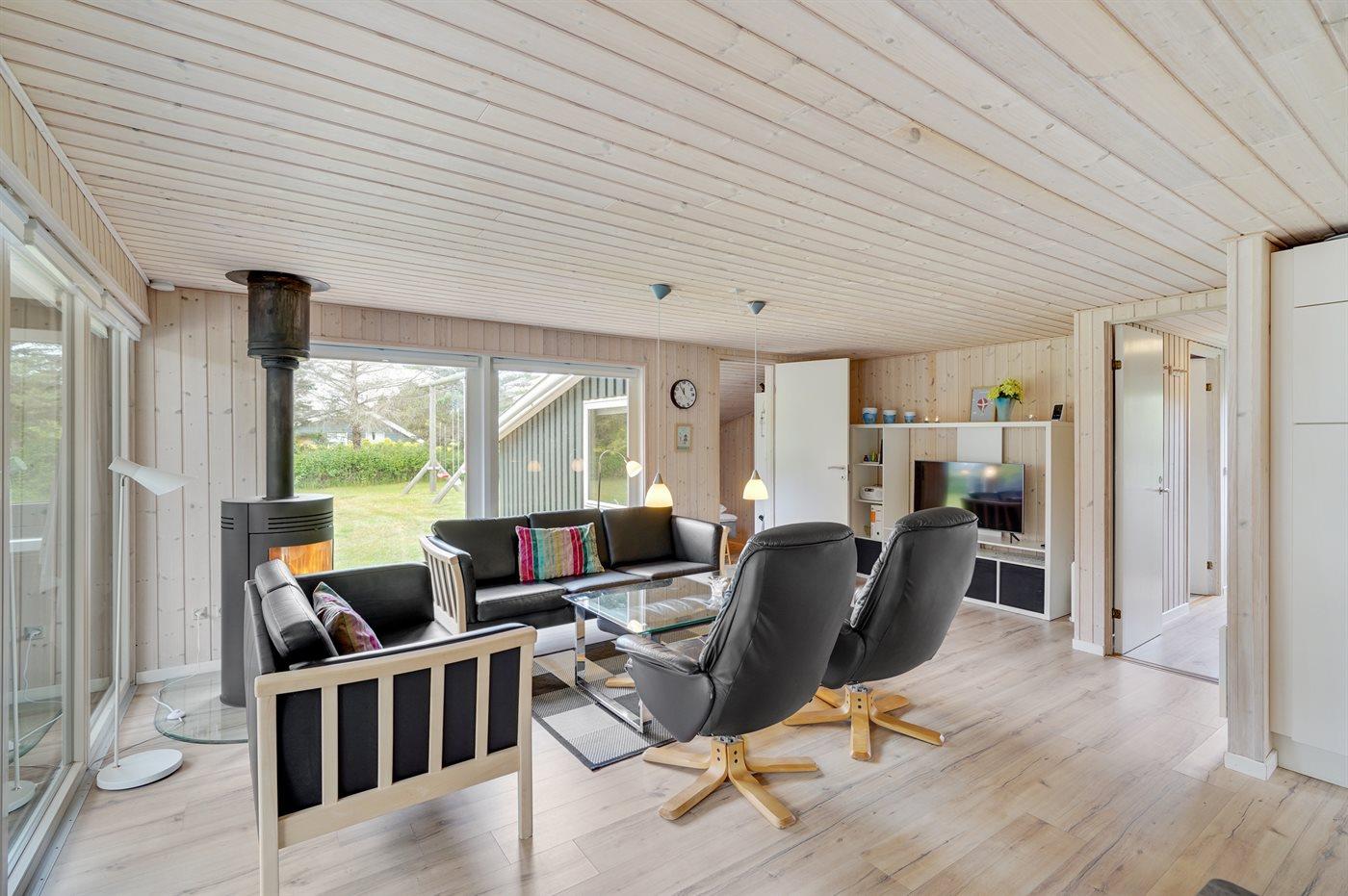 Velholdt og hyggeligt sommerhus i træ fra 1973, sidst renoveret i 2020 med bl.a. nye gulve, beliggende på en indhegnet og ugenert havegrund. Godt både åbent og overdækket terrasseareal med havemøbler. Badeværelse med bruseniche og gulvvarme. Køkken med bl.a. mikrobølgeovn, varmluftovn, komfur med keramiske kogeplader samt opvaskemaskine. Desuden fryser med en kapacitet på 60 liter i redskabsrummet. Stor, hyggelig opholdsstue med brændeovn, TV med parabol (digital), radio og CD-afspiller. Husets 6 sovepladser er fordelt på 3 værelser med nye senge; 1 værelse med 1 dobbeltseng og 2 værelser med 2 enkeltsenge. Der er installeret energibesparende varmepumpe. Gode legemuligheder for børn på grunden, bl.a. gynge og sandkasse.