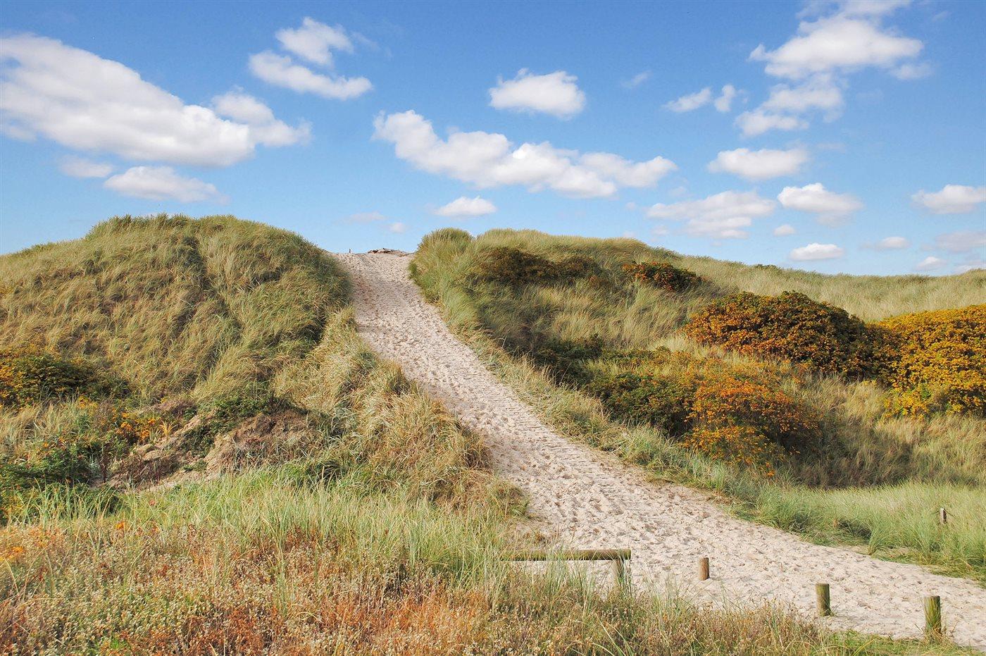 Ferieboligen er beliggende på en 1207 m² stor klitgrund. Der er 424 m til havet. Der er 1950 m til fjorden. Nærmeste forretning er beliggende i en afstand af 1200 m. Til ferieboligen hører 25 m² terrasseareal. Desuden er der 12 m² overdækket terrasse. Heraf i alt 37 m² lukket terrasse.