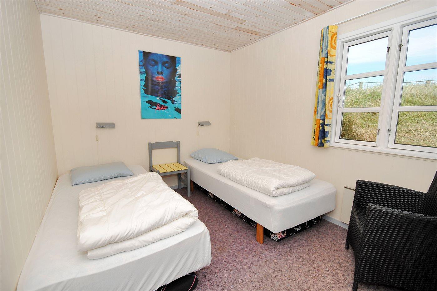 Der er i alt 3 soveværelser. Sovepladserne fordeler sig på: 2 sovepladser i dobbeltseng. 4 sovepladser i enkeltsenge.