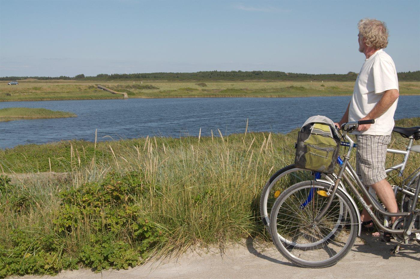 Charmerende sommerhus nær Vesterhavet med brændeovn og lukket terrasse på stor klitgrund.
