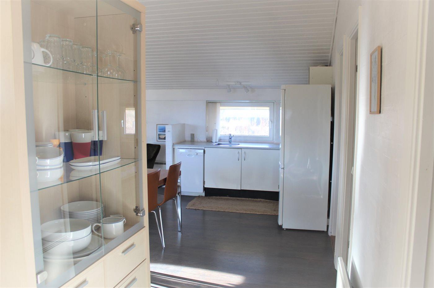 Køkkenet er udstyret med 1 køleskab. Der er 4 keramiske kogeplader, bageovn, mikrobølgeovn samt opvaskemaskine.