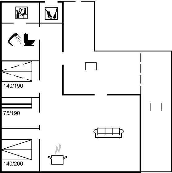 Der er i alt 3 soveværelser. Sovepladserne fordeler sig på: 2 sovepladser i dobbeltseng. 2 sovepladser i køjeseng. 2 sovepladser i sovesofa (dobbelt).