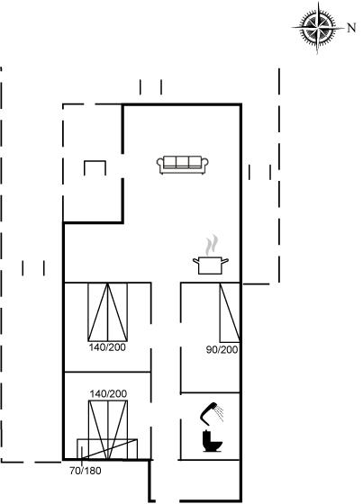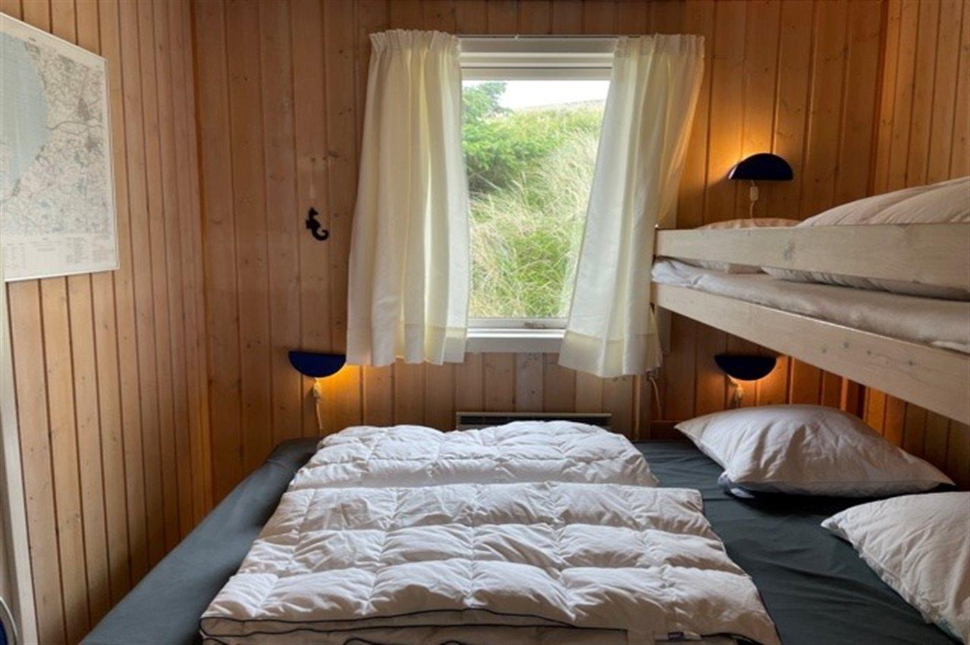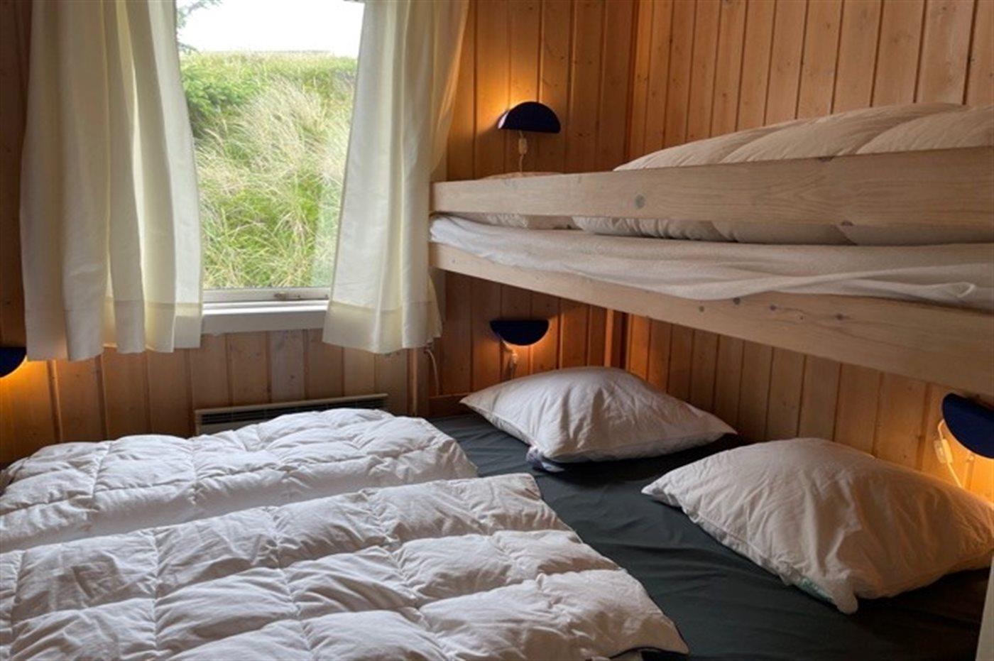 Der er i alt 3 soveværelser. Sovepladserne fordeler sig på: 4 sovepladser i dobbeltsenge.1 soveplads i køjeseng.