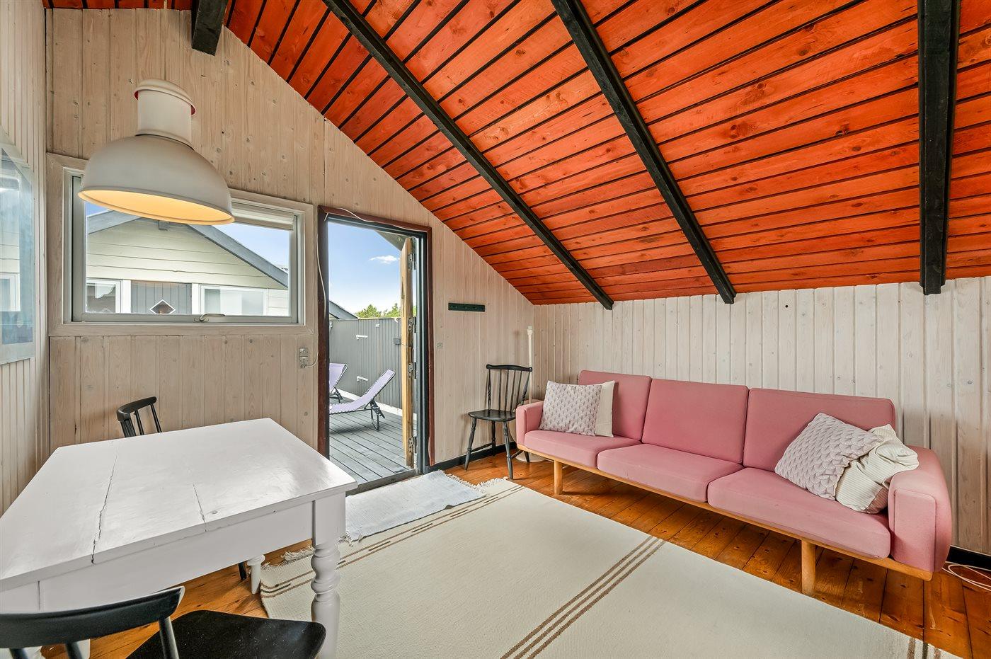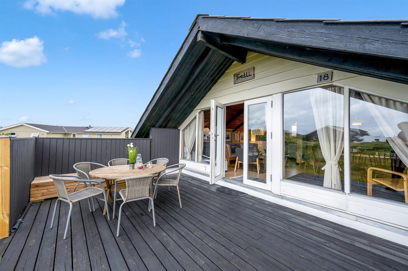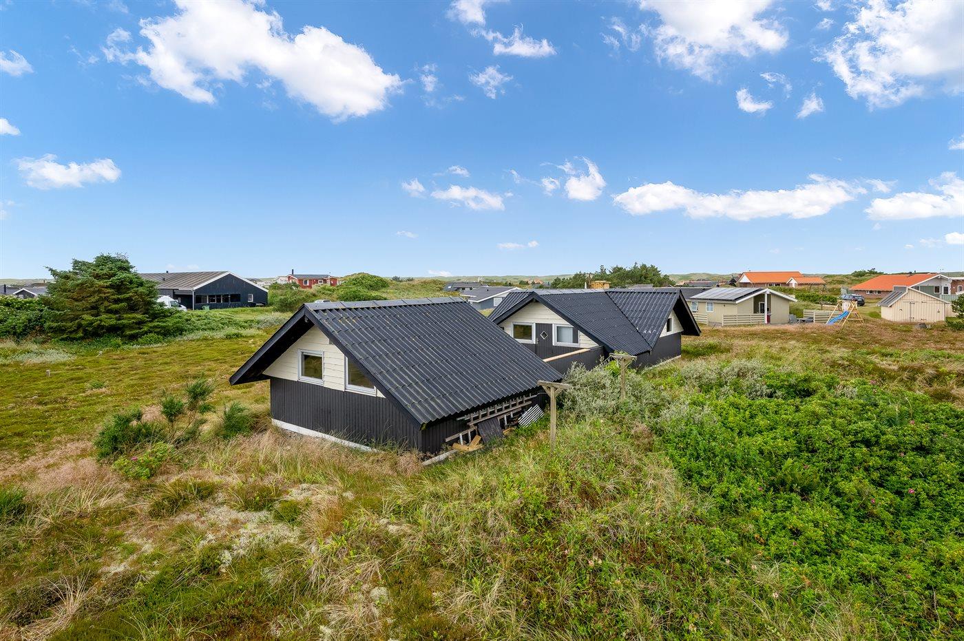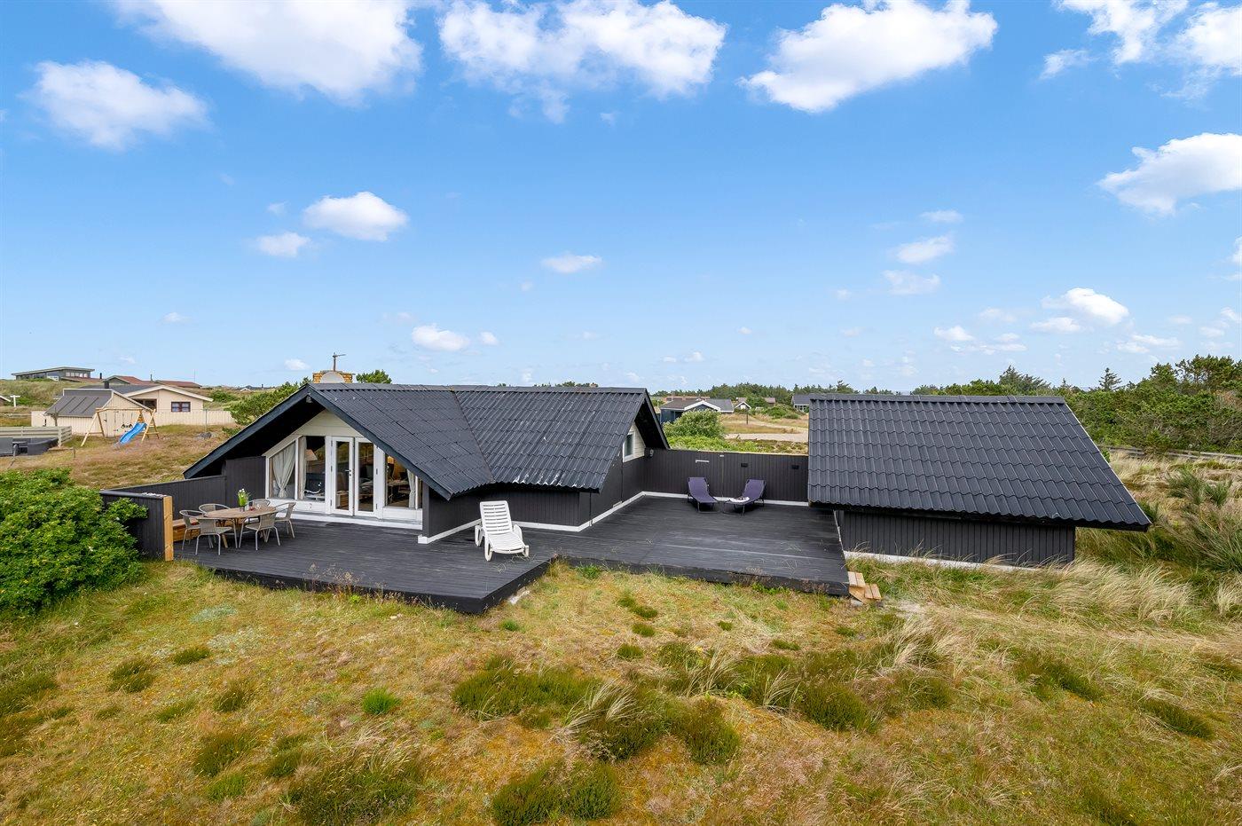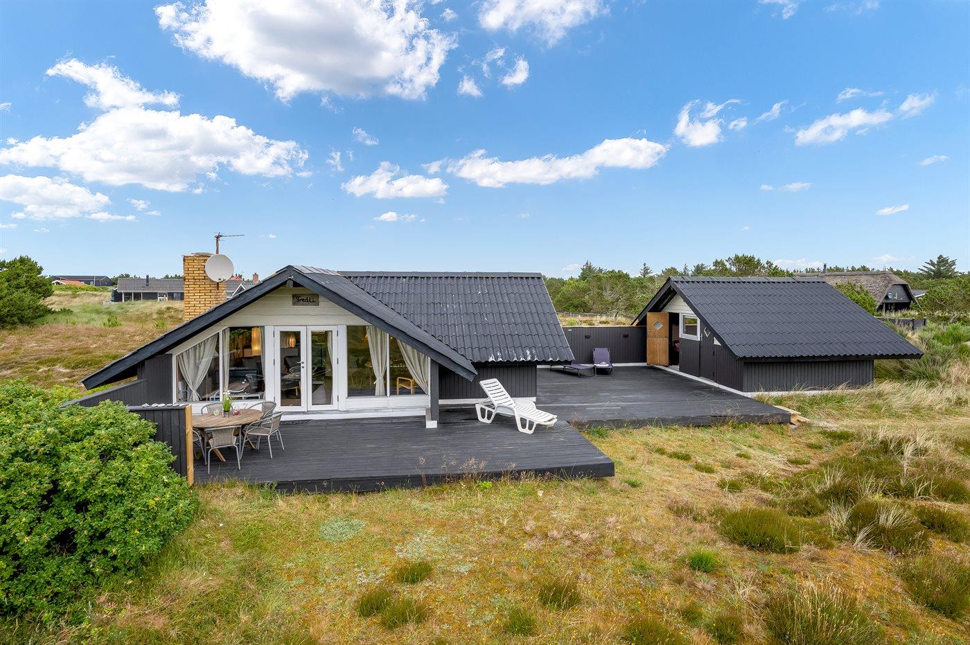 Charmerende sommerhus i Hvide Sande med stor terrasse og anneks på en rolig lynggrund.