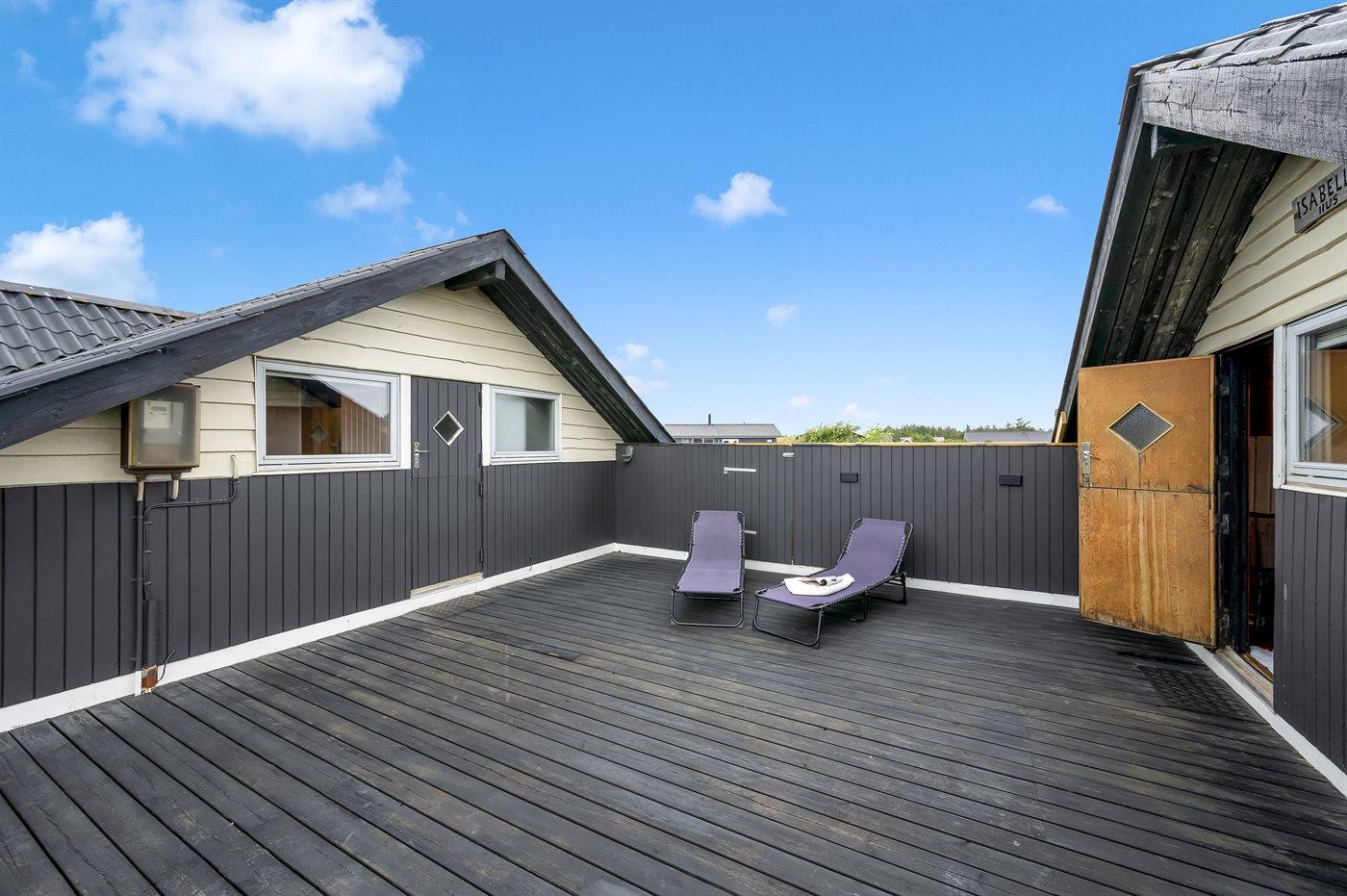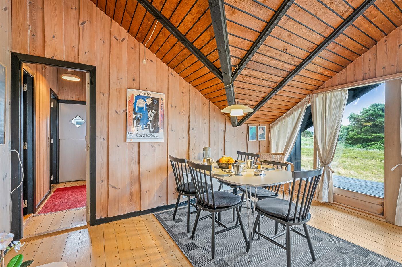 Dette sommerhus ligger på en stor, let kuperet lynggrund i rolige omgivelser. Til huset hører et stort åbent og overdækket terrasseareal med havemøbler og gode læforhold. På grunden findes es anneks, som er indrettet med møbler og dobbeltseng.