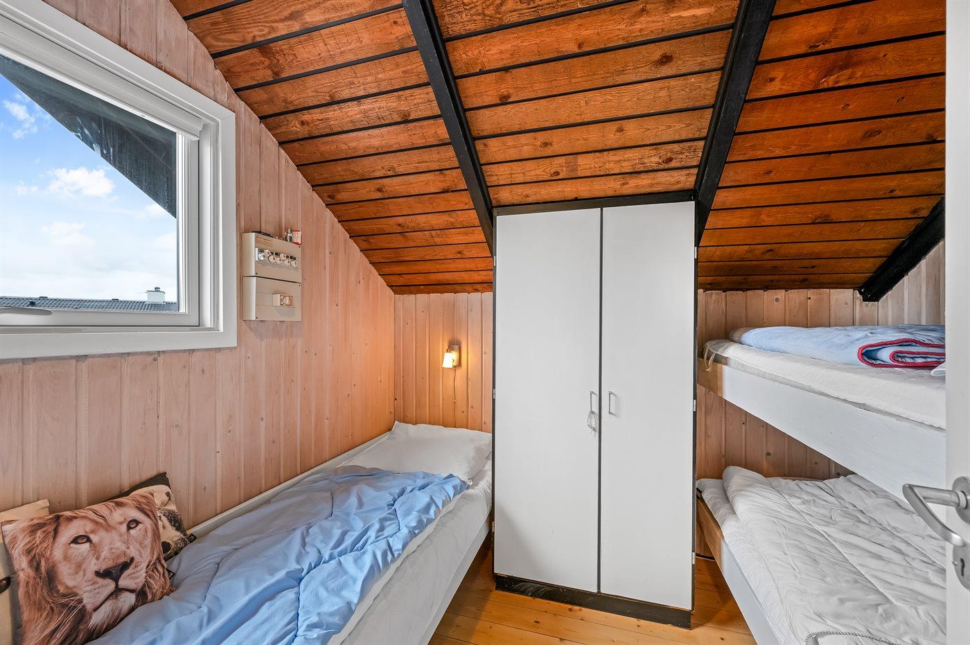 Der er i alt 3 soveværelser. Sovepladserne fordeler sig på: 4 sovepladser i dobbeltsenge. 1 soveplads i enkeltseng. 2 sovepladser i køjeseng. 2 af disse sovepladser befinder sig i et anneks.