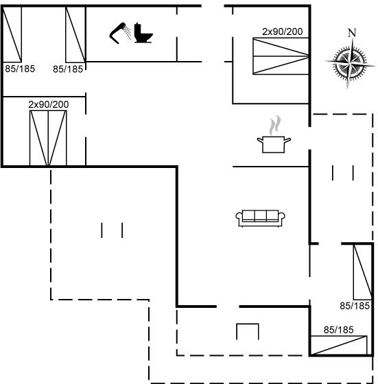 Der er i alt 4 soveværelser. Sovepladserne fordeler sig på: 4 sovepladser i dobbeltsenge. 4 sovepladser i enkeltsenge.