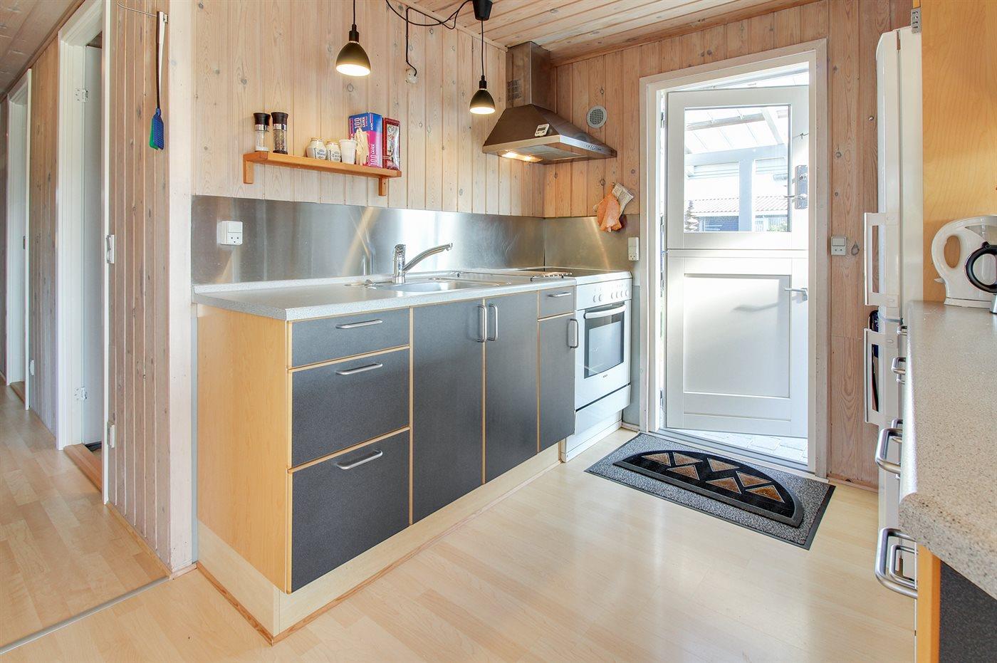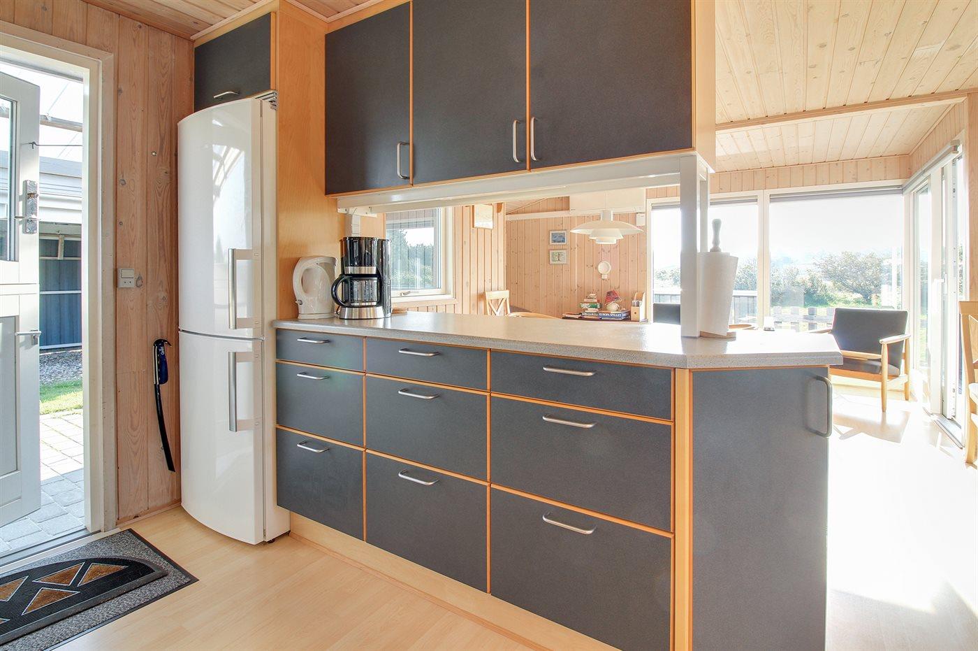 Køkkenet er udstyret med 1 køleskab. Der er 4 keramiske kogeplader, varmluftovn.