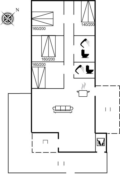 Der er i alt 3 soveværelser. Sovepladserne fordeler sig på: 6 sovepladser i dobbeltsenge.