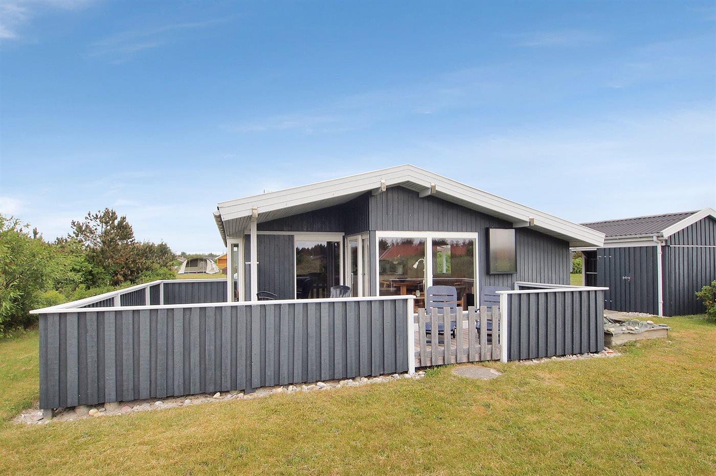 Ferieboligen er beliggende på en 1237 m² stor naturgrund. Der er 1100 m til havet. Der er 800 m til fjorden. Nærmeste forretning er beliggende i en afstand af 300 m. Til ferieboligen hører 25 m² terrasseareal. Desuden er der 10 m² overdækket terrasse. Gynge. Sandkasse. Der er carport til rådighed. Parkering ved ferieboligen.
