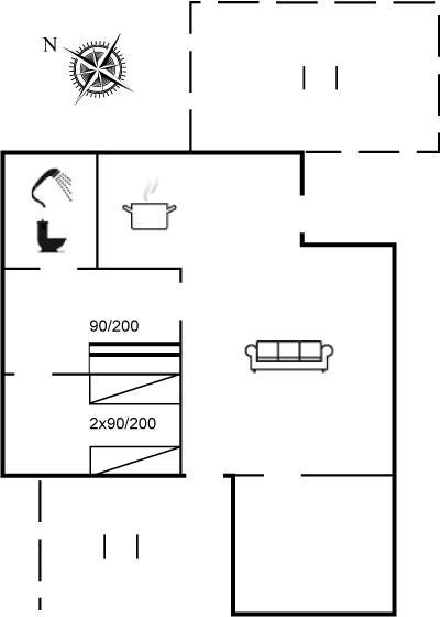 Der er i alt 2 soveværelser. Sovepladserne fordeler sig på: 2 sovepladser i enkeltsenge. 2 sovepladser i køjeseng.