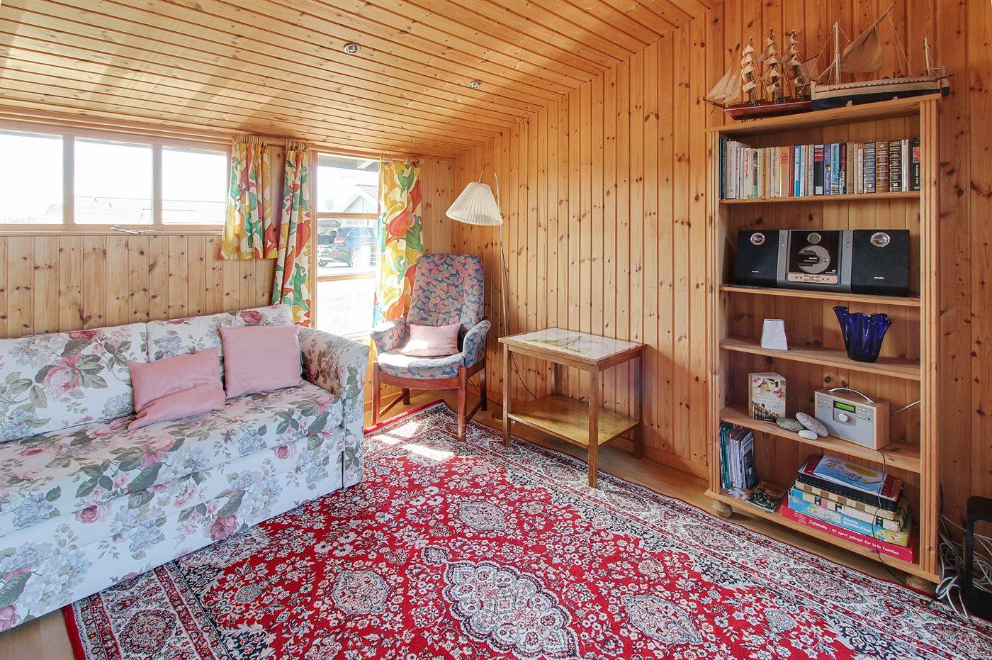 Dette sommerhus i træ ligger på en skøn naturgrund kun 400 m fra vandet. Til huset hører åbent terrasseareal med havemøbler.