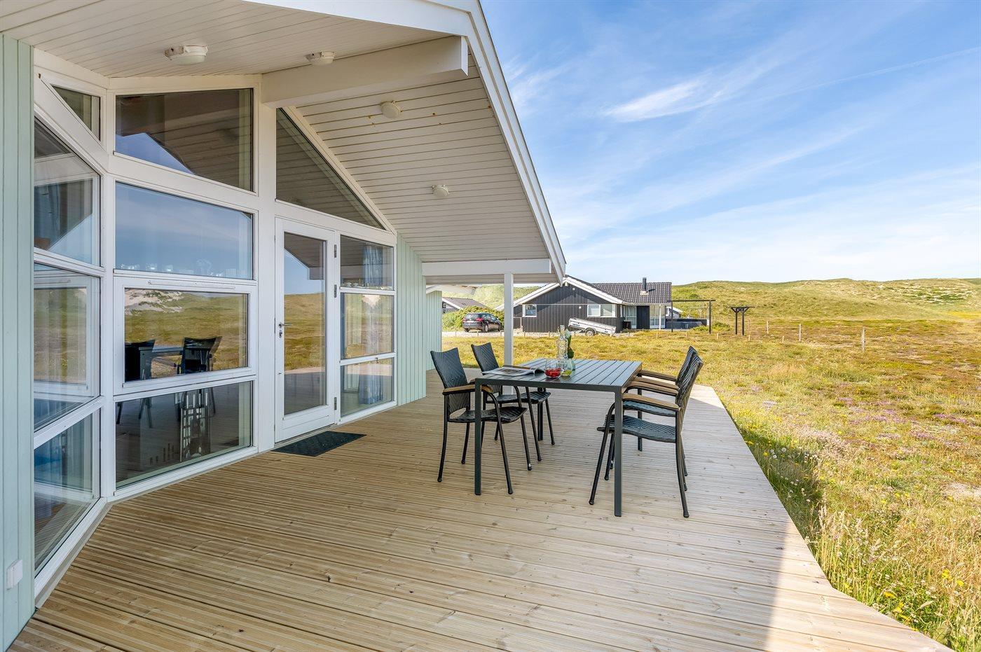 Et skønt luksussommerhus i træ med spa og sauna - beliggende på natur-/klitgrund kun 150 m fra Vesterhavet. Til huset hører stort terrasseareal, både åbent og overdækket, med havemøbler. Fantastisk panoramaudsigt fra såvel terrasse som hus til fredet natur/-klitområde.