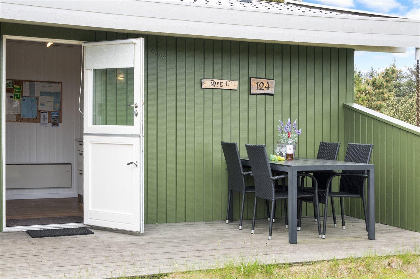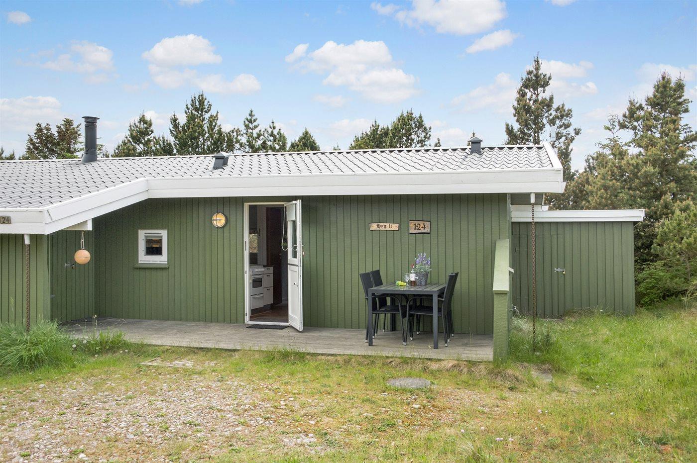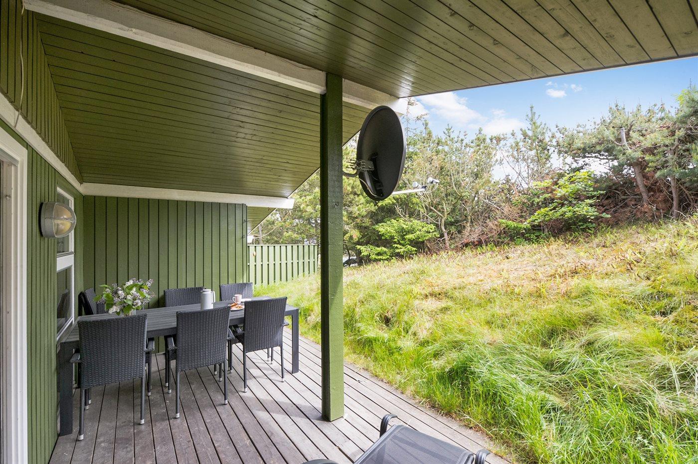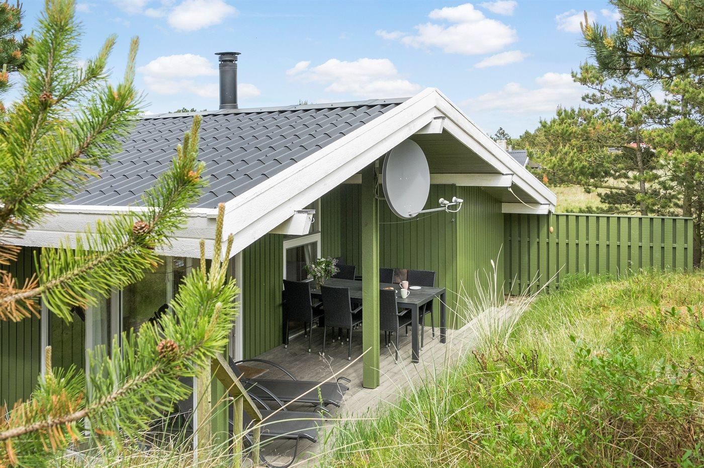 Ferieboligen er beliggende på en 1350 m² stor klitgrund. naturgrund. Der er 1200 m til havet. Der er 600 m til fjorden. Nærmeste forretning er beliggende i en afstand af 600 m. Til ferieboligen hører 22 m² terrasseareal. Desuden er der 12 m² overdækket terrasse. Parkering ved ferieboligen.