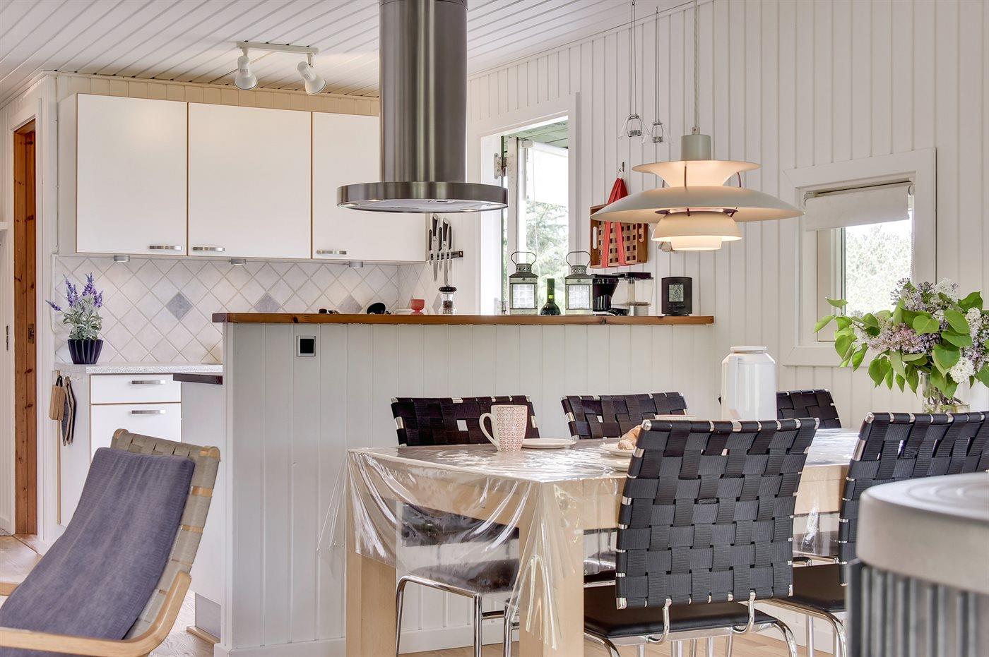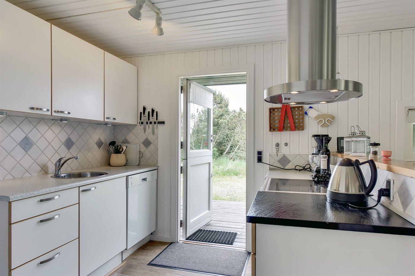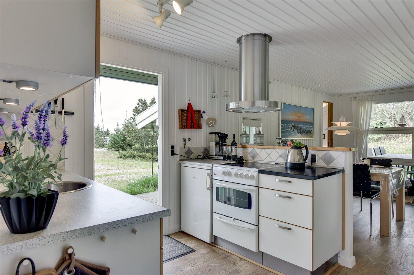Køkkenet er udstyret med 1 køleskab. Der er 4 keramiske kogeplader, varmluftovn samt opvaskemaskine . Der findes desuden et køle-/fryseskab i udhuset.