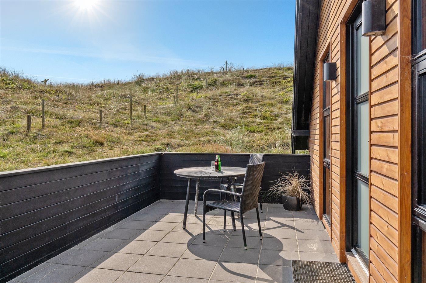 Ferieboligen er beliggende på en 1509 m² stor klitgrund. Der er 150 m til havet. Der er 2000 m til fjorden. Nærmeste forretning er beliggende i en afstand af 1100 m. Til ferieboligen hører 74 m² terrasseareal. Desuden er der 4 m² overdækket terrasse. Der ligger en legeplads i en afstand af 1100 m. Grill til rådighed. Der er installeret stik til opladning af elbil. CEE stik. Parkering ved ferieboligen.
